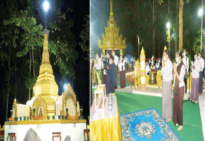 ပြည်ထောင်စုသမ္မတမြန်မာနိုင်ငံတော်၊ နိုင်ငံတော်စီမံအုပ်ချုပ်ရေးကောင်စီ ၂၀၂၁ ခုနှစ် ကထိန်သင်္ကန်း ဆက်ကပ်လှူဒါန်းပွဲ အခမ်းအနားကို ယနေ့နံနက်ပိုင်းတွင် နေပြည်တော်ရှိ ဥပ္ပါတသန္တိစေတီတော်၊ သာသနာ့မဟာဗိမာန်တော်၌ ကျင်းပပြုလုပ်ရာ နိုင်ငံတော်စီမံအုပ်ချုပ်ရေး ကောင်စီဥက္ကဋ္ဌ နိုင်ငံတော်ဝန်ကြီးချုပ် ဗိုလ်ချုပ်မှူးကြီး မင်းအောင်လှိုင်နှင့် ဇနီးဒေါ်ကြူကြူလှတို့ တက်ရောက်၍ ကထိန်လျာသင်္ကန်းနှင့် လှူဖွယ်ပစ္စည်းများ ဆက်ကပ်လှူဒါန်းသည်။