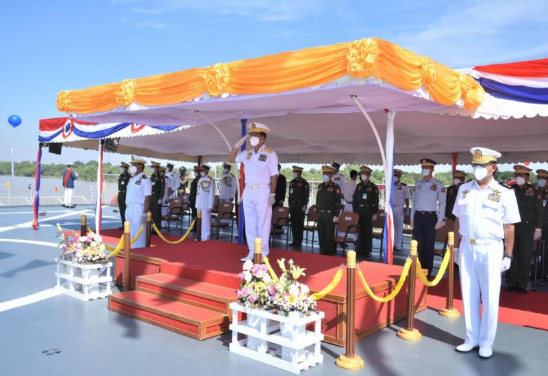 တပ်မတော်(ရေ)၏ (၇၃)နှစ်မြောက် နှစ်ပတ်လည်နေ့တွင် စစ်ရေယာဉ်များတပ်တော်ဝင် ခြင်း အခမ်းအနားကို ရန်ကုန်မြို့ရှိ အမှတ်(၃)ရေတပ်ဆိပ်ခံတံတား၌ ကျင်းပပြုလုပ်ရာ တပ်မတော် ကာကွယ်ရေးဦးစီးချုပ် ဗိုလ်ချုပ်မှူးကြီး မင်းအောင်လှိုင် တက်ရောက်၍ ဂုဏ်ပြု အမှာစကား ပြောကြားသည်။