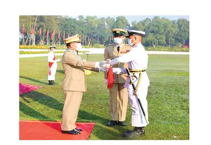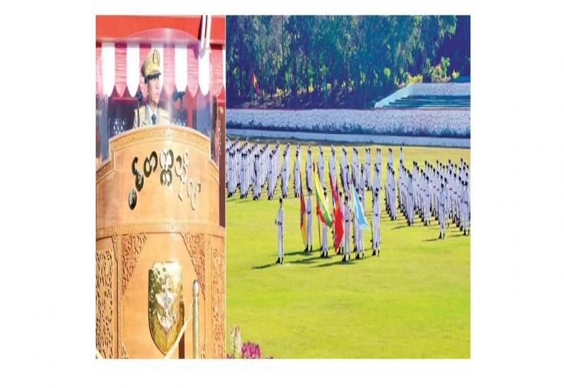 စစ်တက္ကသိုလ် ဗိုလ်လောင်းသင်တန်းအမှတ်စဉ် (၆၂) သင်တန်းဆင်းဂုဏ်ပြု စစ်ရေးပြ အခမ်းအနားကို ယနေ့နံနက်ပိုင်းတွင် ပြင်ဦးလွင်မြို့ စစ်တက္ကသိုလ် စစ်ရေးပြကွင်း၌ ကျင်းပရာ တပ်မတော်ကာကွယ်ရေးဦးစီးချုပ် ဗိုလ်ချုပ်မှူးကြီး မဟာသရေစည်သူ မင်းအောင်လှိုင် တက်ရောက် မိန့်ခွန်းပြောကြားသည်။