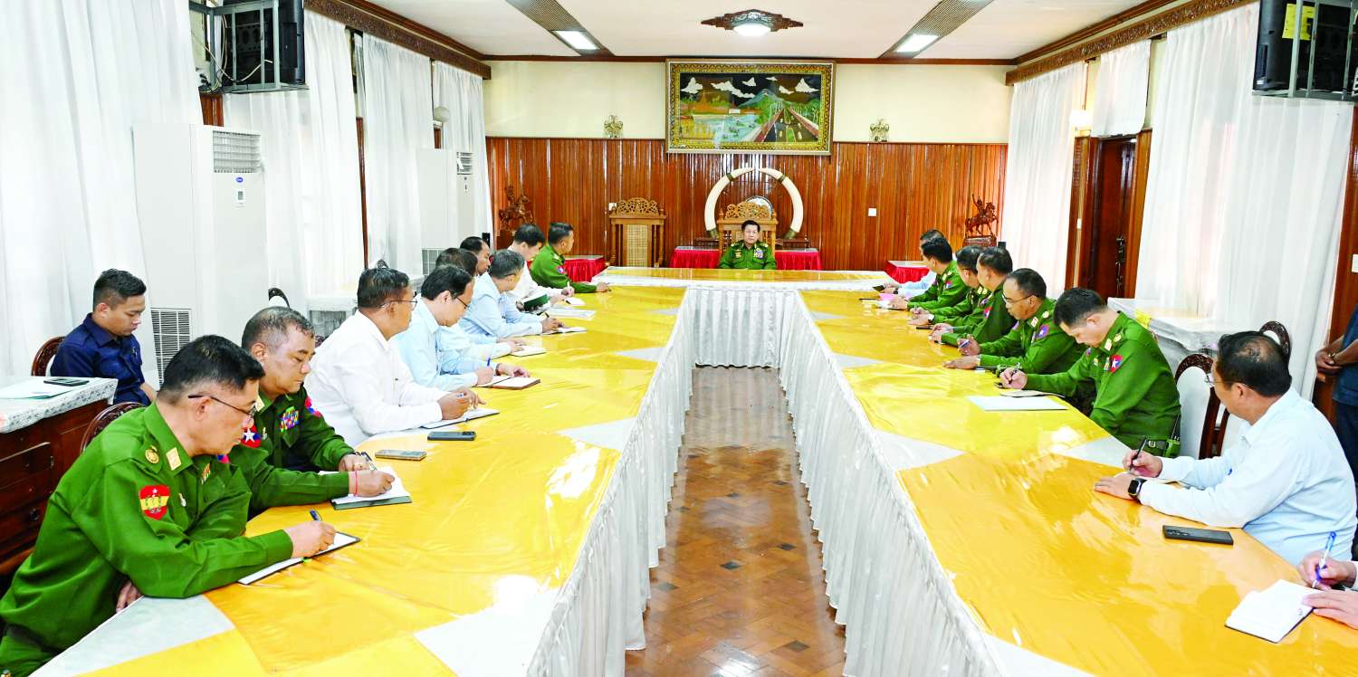 ထို့နောက် အလယ်ပိုင်းတိုင်းစစ်ဌာနချုပ် အစည်းအဝေးခန်းမ၌ မန္တလေးတိုင်းဒေသကြီး ဝန်ကြီးချုပ် ဦးမျိုးအောင်၊ စစ်ကိုင်းတိုင်းဒေသကြီး ဝန်ကြီးချုပ် ဦးမြတ်ကျော်၊ အလယ်ပိုင်းတိုင်းစစ်ဌာနချုပ် တိုင်းမှူးနှင့် တာဝန်ရှိသူများက မန္တလေးတိုင်းဒေသကြီးအတွင်း ငလျင်ဒဏ်ကြောင့် ထိခိုက်ပျက်စီးဆုံးရှုံးခဲ့ရမှုများ၊ ရှာဖွေကူညီကယ်ဆယ်ရေးလုပ်ငန်းများ ဆောင်ရွက်ပေးလျက်ရှိမှုအခြေအနေများကို တင်ပြကြရာ နိုင်ငံတော်စီမံအုပ်ချုပ်ရေးကောင်စီဥက္ကဋ္ဌ နိုင်ငံတော်ဝန်ကြီးချုပ်က ရှာဖွေကူညီကယ်ဆယ်ရေးလုပ်ငန်းများနှင့်ပတ်သက်၍ အမြန်ဆုံး ဆောင်ရွက်ပေးသွားရန်လိုကြောင်း၊ ထိခိုက်ဒဏ်ရာရရှိသူများကို နီးစပ်ရာ ဆေးရုံ၊ ဆေးခန်းများ၌ အမြန်ဆုံးပို့ဆောင်၍ လိုအပ်သည့် ကျန်းမာရေးစောင့်ရှောက်မှုများကို စစ်ဘက်၊ အရပ်ဘက်မှ ဆေးမှူးပါရဂူများဖြင့် အမြန်ဆုံး ဆောင်ရွက်ပေးသွားရန်လိုကြောင်း၊ သေဆုံးခဲ့ရသူများကိုလည်း ကောင်းမွန်စွာဖြင့် သင်္ဂြိုဟ်ခြင်းများ ဝိုင်းဝန်းဆောင်ရွက်ပေးသွားရန်လိုကြောင်း၊ ပျက်စီးဆုံးရှုံးမှုများကြောင့် နေထိုင်ရန်အခက်အခဲရှိသူများကိုလည်း ကိုဗစ် - ၁၉ ဖြစ်ပေါ်စဉ်ကကဲ့သို့ နေထိုင်ရန် နေရာများကို တာဝန်ရှိသူများက သက်ဆိုင်ရာနေရာများအလိုက် အမြန်ဆုံး စီစဉ်ဆောင်ရွက်ပေးသွားရန်လိုကြောင်း၊ ငလျင်ဒဏ်ကြောင့် ပြိုကျပျက်စီးမှုများဖြစ်ပေါ်ခဲ့သည့် အန္တရာယ်ရှိ အဆောက် အအုံများကိုလည်း အမြန်ဆုံး စနစ်တကျ ရှင်းလင်းမှုများ ဆောင်ရွက်သွားရန်လိုကြောင်း၊ ယခုဖြစ်စဉ်ကို သင်ခန်းစာယူ၍ သက်တမ်းရင့်အဆောက်အအုံများအား အရည်အသွေးစစ်ဆေး ခြင်း၊ အဆောက်အအုံသစ်များ ဆောက်လုပ်ရာတွင် သတ်မှတ်ခံနိုင်ရည်စံနှုန်းများနှင့်အညီ တည်ဆောက်စေရေးတို့ကို စနစ်တကျ စစ်ဆေးဆောင်ရွက်သွား ရန်လိုကြောင်း၊ ငလျင်ဒဏ်သင့် ဒေသများ၌ ရေ၊ မီးနှင့် နေထိုင်ရန်နေရာများ အဆင်ပြေမှုရှိစေရေး၊ စားသောက်မှု အဆင်ပြေစေရေး အမြန်ဆုံး စီစဉ်ဆောင်ရွက်ပေးသွားရန်လိုကြောင်း၊ သက်ဆိုင်ရာ တိုင်းဒေသကြီးများအလိုက် ကူညီကယ်ဆယ်ရေးလုပ်ငန်းများ ထိရောက်စွာ ဆောင်ရွက်နိုင်ရေး လေယာဉ်ကွင်းနှင့် လေယာဉ် ပြေးလမ်းများကို အမြန်ဆုံးကောင်းမွန်အောင် ဆောင်ရွက်သွားရန်လိုကြောင်းနှင့် အခြားလိုအပ်သည်များကို လမ်းညွှန်မှာကြားခဲ့သည်။