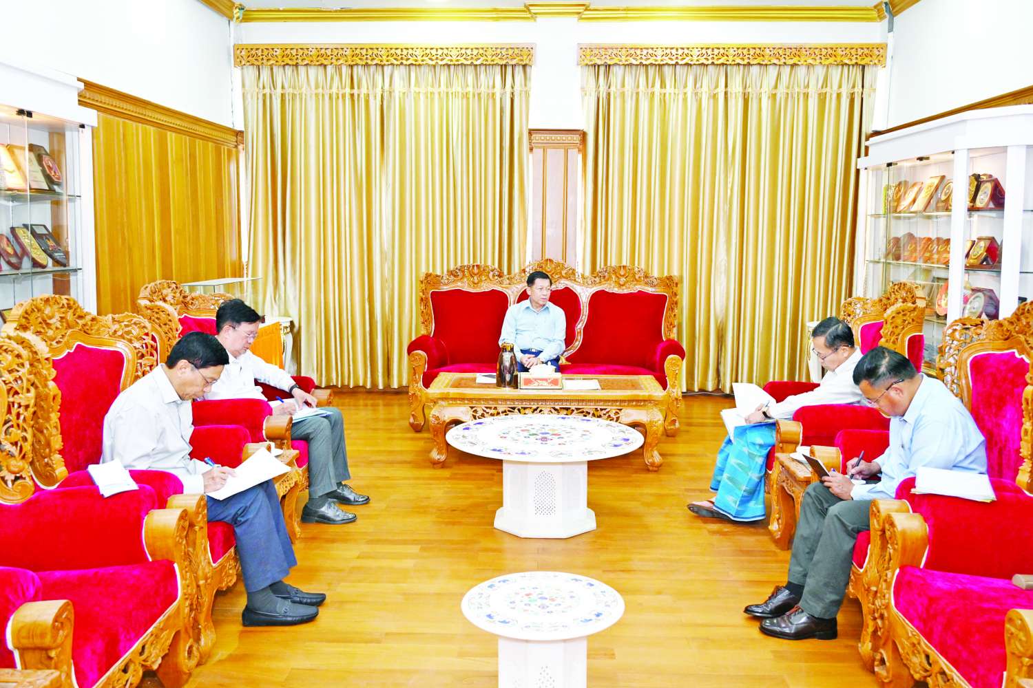 ရှေးဟောင်းယဉ်ကျေးမှုအမွေအနှစ်အဆောက်အအုံများ ထိခိုက်ပျက်စီးခဲ့ရမှုများကို ပြန်လည်တည်ဆောက်ရေး လုပ်ငန်းများ ဆောင်ရွက်ရာတွင် ရေရှည်တည်တံ့ခိုင်မြဲမှုရှိစေရေးနှင့် ခိုင်ခိုင်မာမာဖြစ်စေရေး စနစ်တကျတွက်ချက်ဆောင်ရွက်သွားရန်လိုကြောင်း၊ မန္တလေးနန်းမြို့ရိုးတစ်လျှောက် ထိခိုက်ပျက်စီးမှုသည် ၄၀ ရာခိုင်နှုန်းခန့်ရှိကြောင်း၊ ပြန်လည်ပြုပြင် တည်ဆောက်ခြင်းများ ဆောင်ရွက်ရာတွင် ရှေးမူလက်ရာမပျက် ဆောင်ရွက်သွားရန်နှင့် အုတ်ရိုးပြုပြင်မှုအား အရည်အသွေးမြင့်၊ စံချိန်မီအုတ်များကို အသုံးပြု၍ မိုးမကျမီပြုပြင်ပြီးစီးနိုင်ရေး ဆောင်ရွက်သွားရန်လိုကြောင်း၊ မန္တလေးမြို့တွင်းရှိ ဘုန်းတော်ကြီးကျောင်းများတွင် အဆောက်အအုံနေရာအနည်းငယ်အတွင်း သံဃာတော်များ အများအပြား သီတင်းသုံး နေထိုင်လျက်ရှိသဖြင့် သံဃာတော်များအားလုံး၏ ဆွမ်းကွမ်းနှင့် ဝေရာဝစ္စကိစ္စရပ်များအားလုံးအဆင်ပြေစေရေး သင့်လျော်သည့်စီမံမှုများ ဆောင်ရွက်ပေးသွားရန် လိုကြောင်း။