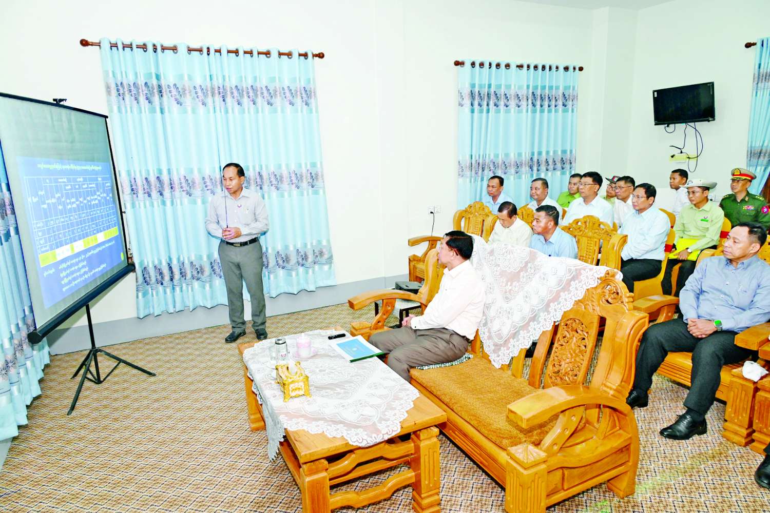 ယင်းနောက် နိုင်ငံတော်စီမံအုပ်ချုပ်ရေးကောင်စီဥက္ကဋ္ဌ နိုင်ငံတော်ဝန်ကြီးချုပ်နှင့် အဖွဲ့ဝင်များသည် စစ်ကိုင်းတိုင်းဒေသကြီးအစိုးရအဖွဲ့ အသင်္ခယာရိပ်သာသို့ ရောက်ရှိကြပြီး စစ်ကိုင်းတိုင်းဒေသကြီးဝန်ကြီးချုပ် ဦးမြတ်ကျော်က စစ်ကိုင်းတိုင်းဒေသကြီးအတွင်း ငလျင်ဒဏ်ကြောင့် လူထိခိုက်သေဆုံးခဲ့ရမှုများ၊ သာသနိကအဆောက်အအုံများ၊ ပညာရေး၊ ကျန်းမာရေးဆိုင်ရာ အဆောက်အအုံများ၊ လမ်းတံတားများထိခိုက်ပျက်စီးခဲ့ရမှု အခြေအနေများ၊ တပ်မတော်သားများ၊ မြန်မာနိုင်ငံရဲတပ်ဖွဲ့ဝင်များ၊ မီးသတ်တပ်ဖွဲ့ဝင်များ၊ ကြက်ခြေနီဝန်ထမ်းများ၊ ပြည်ပနိုင်ငံများမှ ရောက်ရှိလာသည့် ကူညီကယ်ဆယ်ရေးအဖွဲ့များ အတူတကွပူးပေါင်း၍ ရှာဖွေကူညီကယ်ဆယ်ရေးလုပ်ငန်းများ ဆောင်ရွက်ပေးခဲ့မှုနှင့် အပျက်အစီးများအား ဖယ်ရှားရှင်းလင်းခြင်းလုပ်ငန်းများ ဆောင်ရွက်ပေးလျက်ရှိမှု အခြေအနေများကို ရှင်းလင်းတင်ပြသည်။