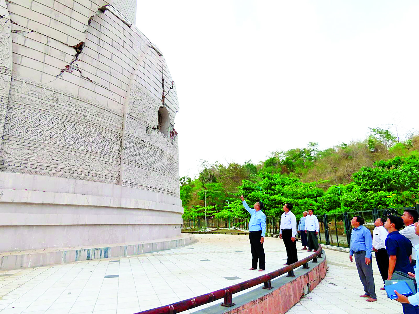 သာသနာရေးနှင့် ယဉ်ကျေးမှုဝန်ကြီးဌာန ပြည်ထောင်စုဝန်ကြီး ဦးတင်ဦးလွင်၊ ဒုတိယဝန်ကြီး ဦးအေးထွန်းနှင့် တာဝန်ရှိသူများသည် ယနေ့ညနေပိုင်းတွင် ငလျင်ဒဏ်ကြောင့် နေပြည်တော် သံဝေဇနိယလေးဌာန (ဖွား၊ ပွင့်၊ ဟော၊ စံ)စေတီတော်များ၏ ထိခိုက်ပျက်စီးမှုများကို လိုက်လံကြည့်ရှုစစ်ဆေးသည်။