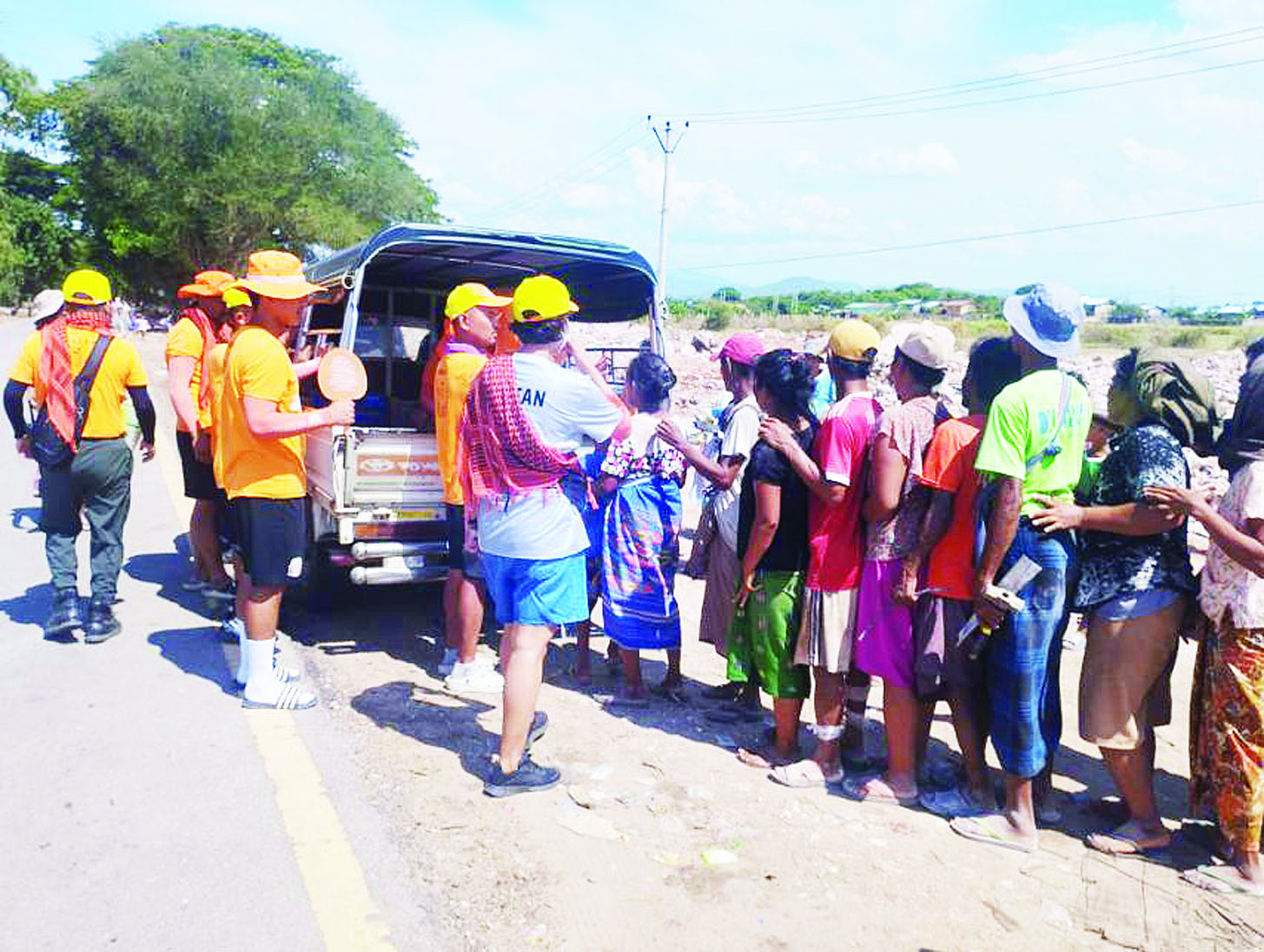 ယင်းနောက် မွန်းလွဲပိုင်းတွင် ပျဉ်းမနားမြို့ အမှတ် (၁) အခြေခံပညာအထက်တန်းကျောင်းနှင့် ပျဉ်းမနားမြို့နယ်အတွင်း မြေငလျင်ဒဏ်ကြောင့် ထိခိုက်ပျက်စီးခဲ့သော အဆောက်အအုံများအား ဖယ်ရှားရှင်းလင်းနေကြသူများထံ သွားရောက်၍ စောင်၊ ခြင်ထောင်များ၊ အရေးပေါ်ကာကွယ်ရေးဆိုင်ရာ တစ်ကိုယ်ရေသုံးပစ္စည်းများနှင့် စားသောက်ဖွယ်ရာများကို ပေးအပ်လှူဒါန်းကြသည်။