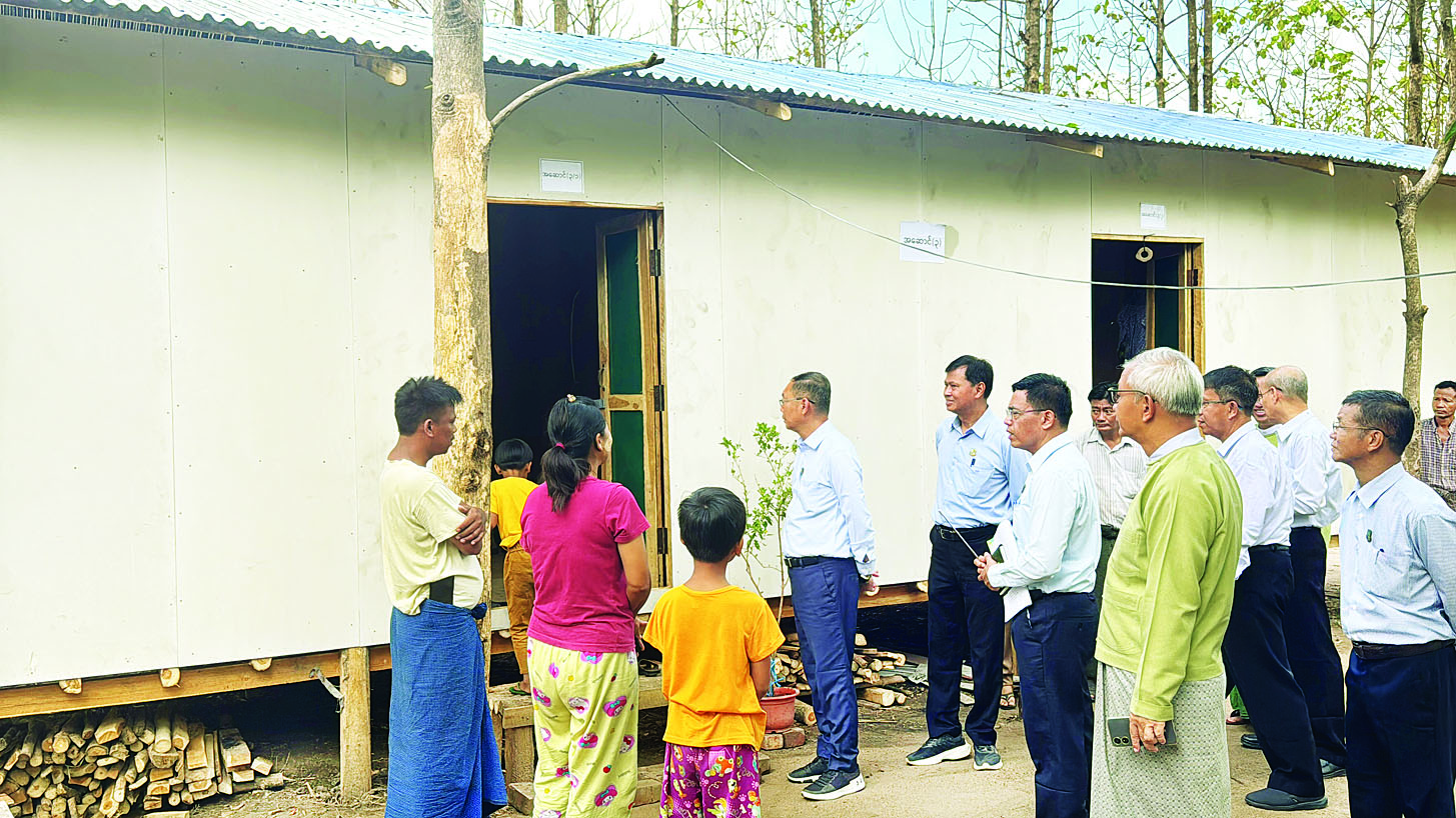 သယံဇာတနှင့်သဘာဝပတ်ဝန်းကျင်ထိန်းသိမ်းရေးဝန်ကြီးဌာန ပြည်ထောင်စုဝန်ကြီး ဦးခင်မောင်ရီသည် ယနေ့နံနက်ပိုင်းတွင် နေပြည်တော်ရှိ ငလျင်ဒဏ်သင့်ဝန်ထမ်းမိသားစုများ ရွှေ့ပြောင်းနေထိုင်ရန်အတွက် ယာယီအဆောက်အအုံများ တည်ဆောက်ပြီးစီးမှု အခြေအနေနှင့် ဝန်ထမ်းမိသားစုများ ရွှေ့ပြောင်းနေထိုင်မှုအခြေအနေကို ကွင်းဆင်းကြည့်ရှုစစ်ဆေးသည်။