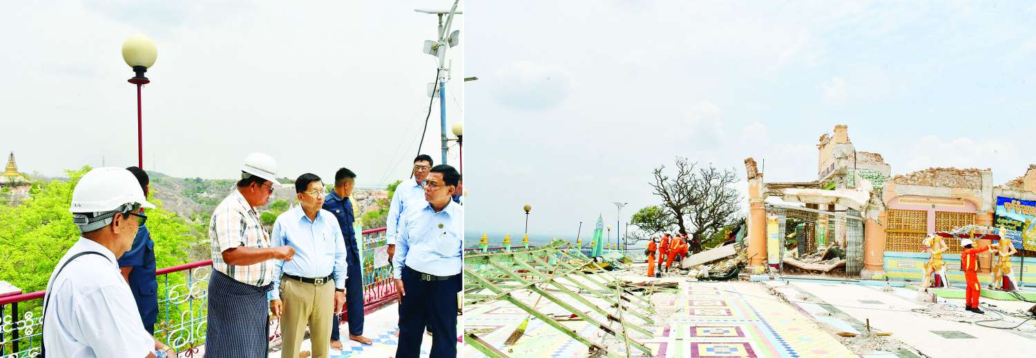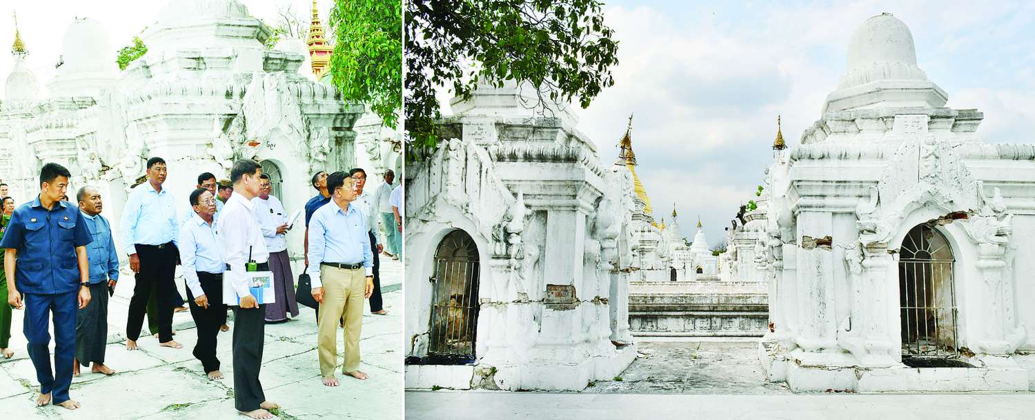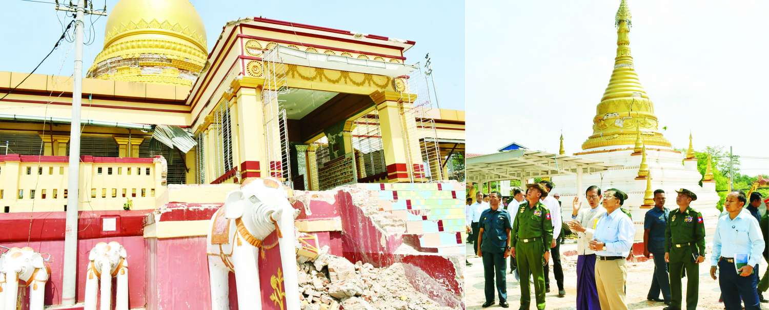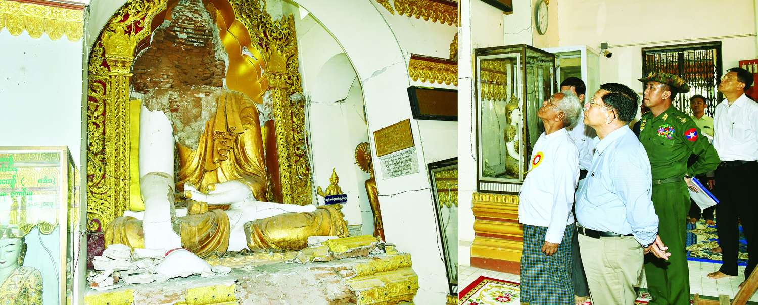 ထို့နောက် နိုင်ငံတော်စီမံအုပ်ချုပ်ရေးကောင်စီဥက္ကဋ္ဌ နိုင်ငံတော်ဝန်ကြီးချုပ်သည် ငလျင်ဒဏ်ကြောင့် ဗုဒ္ဓရုပ်ပွားတော်မြတ် ထိခိုက်ပျက်စီးခဲ့မှု အခြေအနေများကို လှည့်လည် ကြည့်ရှုစစ်ဆေးပြီး တာဝန်ရှိသူများ၏ တင်ပြချက်များအပေါ် ပြန်လည်ပြင်ဆင်ရေးလုပ်ငန်းများ ဆောင်ရွက်ရာ၌ ရှေးမူလက်ရာအတိုင်း ပြန်လည်ပြင်ဆင် ဆောင်ရွက်သွားရန်နှင့် အခြားလိုအပ်သည်များကိုလမ်းညွှန်မှာကြားသည်။