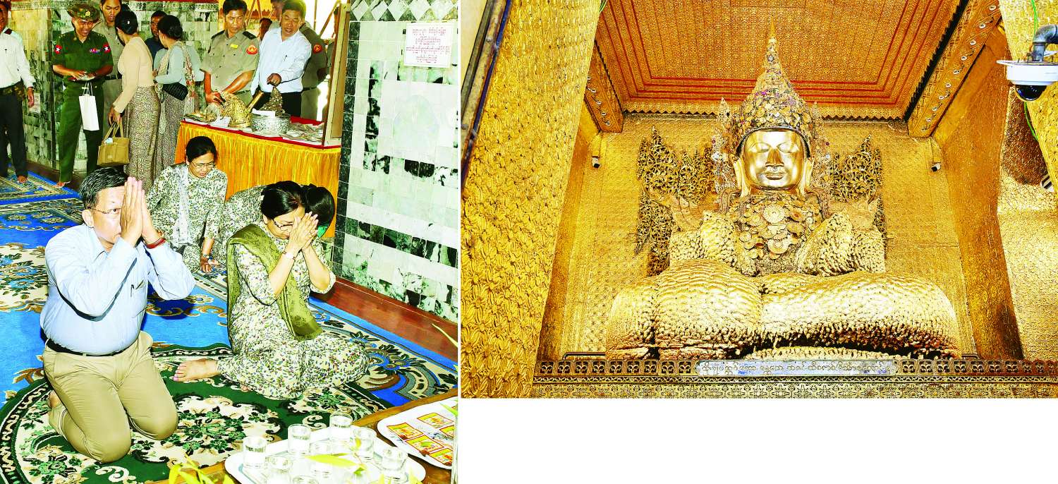 ဆက်လက်၍ နိုင်ငံတော်စီမံ အုပ်ချုပ်ရေးကောင်စီဥက္ကဋ္ဌ နိုင်ငံတော်ဝန်ကြီးချုပ်နှင့် ဇနီးတို့သည် မဟာမုနိဘုရားကြီးအား ဖူးမြော်ကြည်ညိုပြီး ပန်း၊ ရေချမ်းများ ကပ်လှူပူဇော်၍ဖူးမြော် ကြည်ညိုသည်။