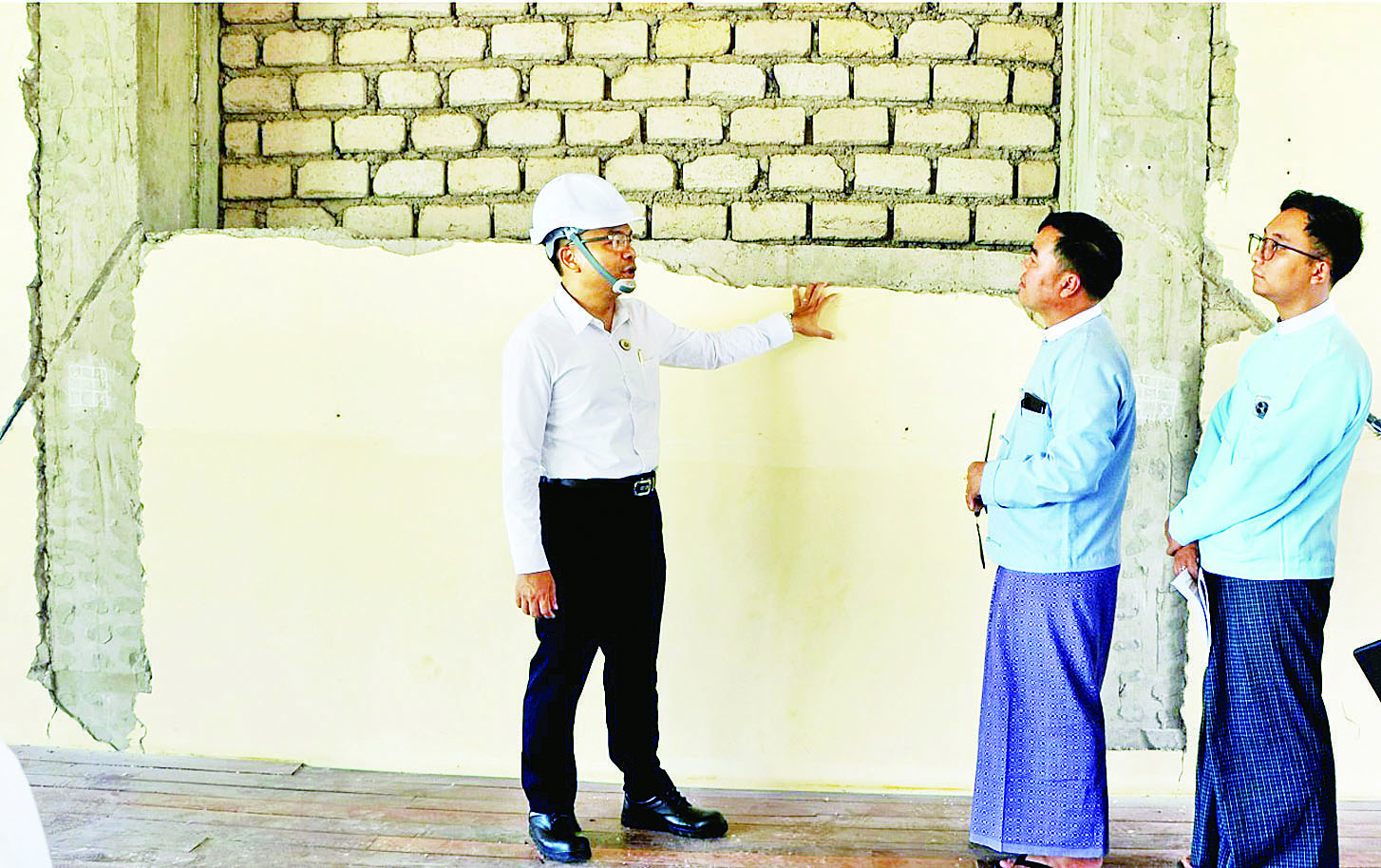 သိပ္ပံနှင့်နည်းပညာဝန်ကြီးဌာန ဒုတိယဝန်ကြီး ဒေါက်တာ အောင်ဇေယျသည် ယမန်နေ့မွန်းလွဲပိုင်းတွင် တောင်ကြီးမြို့နယ် အေးသာယာမြို့ရှိ နည်းပညာတက္ကသိုလ် (တောင်ကြီး) သို့ရောက်ရှိပြီး မန္တလေးငလျင်ကြီး ဘေးဒဏ်သင့်ပင်မသုံးထပ်ဆောင် Lobby ဧရိယာ အရှေ့ဘက်နှင့် အနောက်ဘက်၊ ပင်မသုံးထပ်ဆောင် မြေညီထပ်ရှိအခန်းများ၊ ဘွဲ့နှင်းသဘင်ခန်းမအတွင်း အပြင်များနှင့် ပင်မသုံးထပ်ဆောင်ရှိ အခြားထိခိုက်ပျက်စီးမှုများ၊ ဝန်ထမ်းအိမ်ရာများ၊ ကျောင်းသားအိပ်ဆောင်များတွင် သာမန်အငယ်စားထိခိုက်ပျက်စီးမှုအခြေအနေများ၊ အကြီးစားထိခိုက်ပျက်စီးမှုအခြေအနေများကို လှည့်လည်ကြည့်ရှုစစ်ဆေးကာ Rapid Evaluation Safety Assessment Form Level-2 ဖြင့် ဆက်လက်စစ်ဆေးရန်၊ ပြန်လည်ပြုပြင်သည့်အခါ စံအရည်အသွေးပြည့်မီမှုနှင့် စစ်ဆေးကွပ်ကဲမှုတို့ဆိုင်ရာ လိုအပ်သည်များကို မှာကြားသည်။