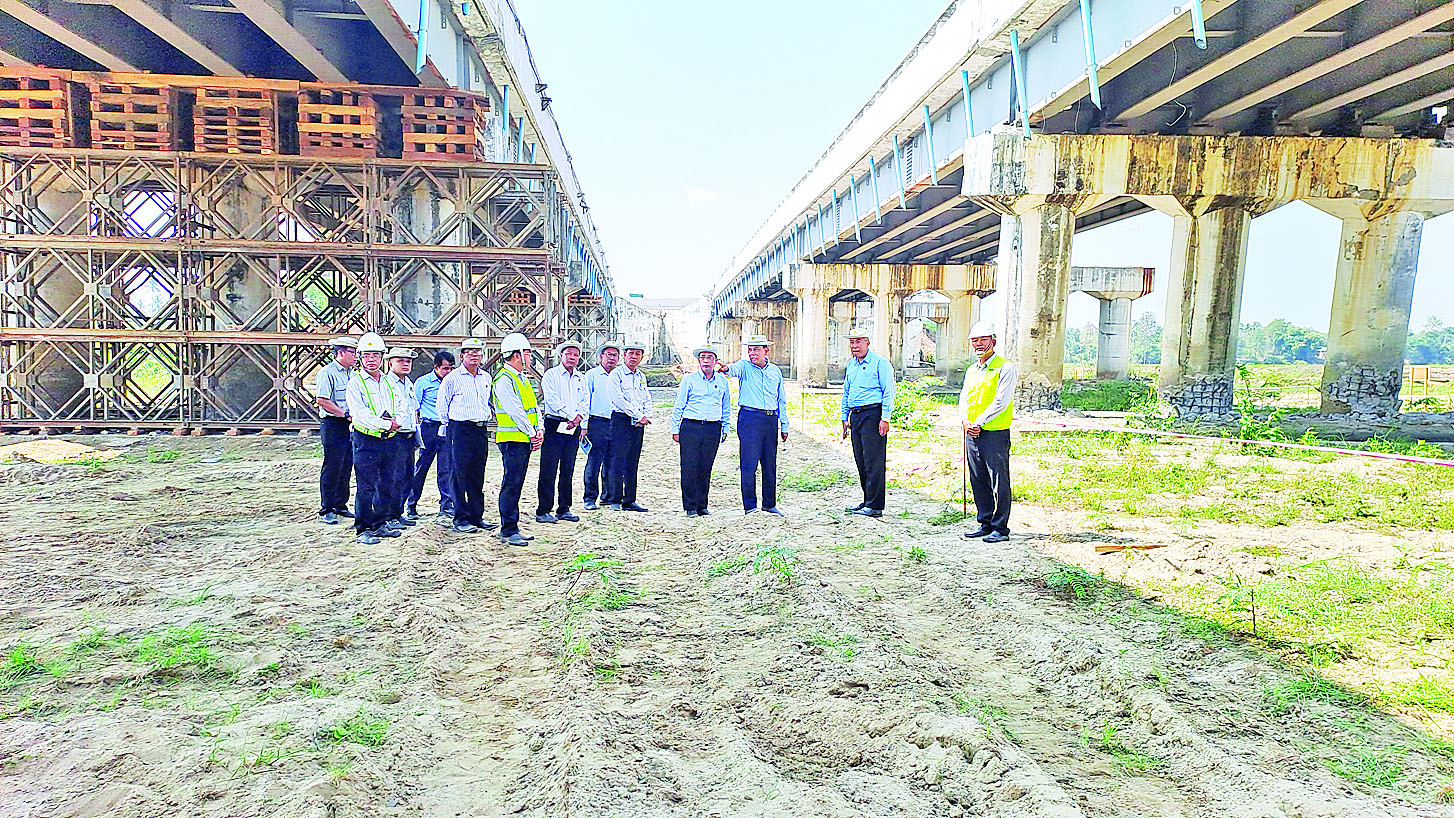 ဦးစွာ ပြည်ထောင်စုဝန်ကြီးနှင့် အဖွဲ့သည် မိုင်တိုင်အမှတ် (၁၆၅/၁) ရှိ ဆွာချောင်းတံတားသို့ ရောက်ရှိပြီး တံတားအဖွဲ့မှ တာဝန်ရှိသူများက အသွားလမ်းနှင့် အပြန်လမ်းတို့တွင်ရှိသော ဆွာချောင်းတံတား နှစ်စင်းလုံးသည် ငလျင်ဒဏ်ကြောင့် တံတားတိုင်များ နိမ့်ကျခြင်း၊ ယိုင်နဲ့ခြင်းနှင့် တိုင်အောက်ခြေကွဲ၍ ပျက်စီးမှုများကိုလည်းကောင်း၊ တံတားဦးစီးဌာန ညွှန်ကြားရေးမှူးချုပ်က တံတားတိုင်အောက်ပိုင်းတွင် ဘေလီငြမ်းများထောက်၍ ကြံ့ခိုင်မှုရှိစေရန် ဆောင်ရွက်ထားသည့် အခြေအနေများကိုလည်းကောင်း ဖြည့်စွက်ရှင်းလင်းတင်ပြရာ ပြည်ထောင်စုဝန်ကြီးက လုပ်ငန်းလိုအပ်ချက်များကို မှာကြားသည်။