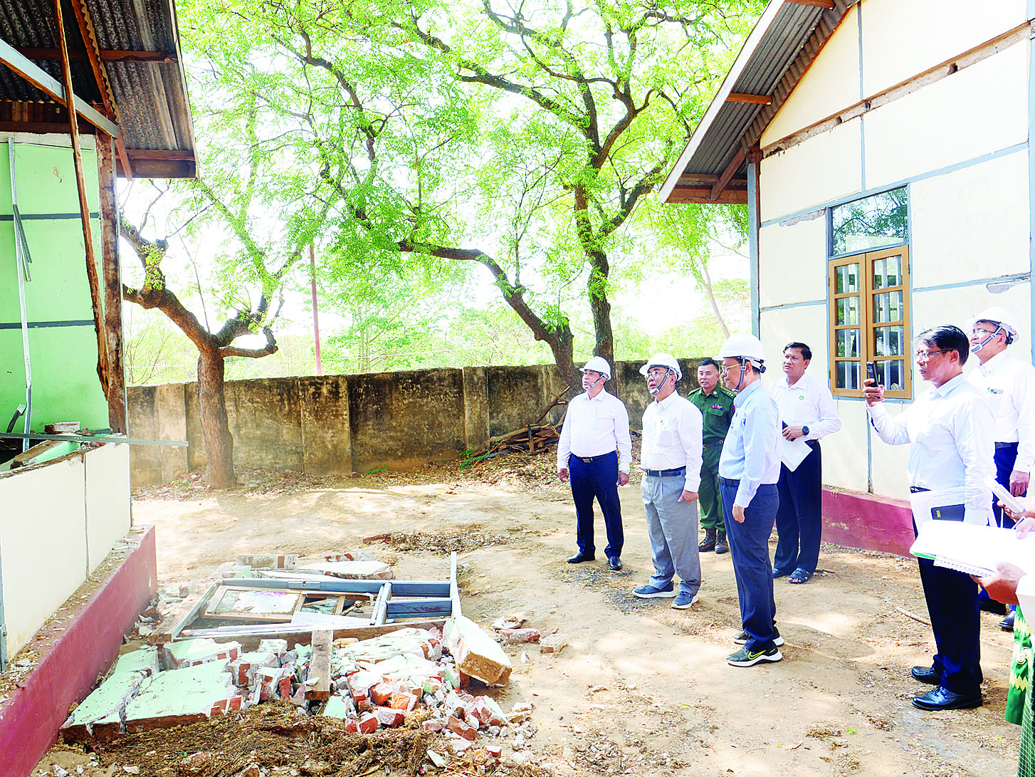 ဦးစွာ ပြည်ထောင်စုဝန်ကြီးသည် မိတ္ထီလာတက္ကသိုလ်၊ မိတ္ထီလာစီးပွားရေးတက္ကသိုလ်၊ မိတ္ထီလာပညာရေးဒီဂရီကောလိပ်၊ မိတ္ထီလာမြို့ အမှတ် (၁) အခြေခံပညာအထက်တန်းကျောင်း၊ အမှတ် (၂) အခြေခံပညာအထက်တန်းကျောင်း၊ အမှတ် (၃) အခြေခံပညာအထက်တန်းကျောင်း၊ အမှတ် (၄) အခြေခံပညာအထက်တန်းကျောင်း၊ အမှတ် (၅) အခြေခံပညာအထက်တန်းကျောင်း (ရှမ်းတဲ)၊ အခြေခံပညာအထက်တန်းကျောင်း (တောမ) နှင့် အခြေခံပညာအထက်တန်းကျောင်း (ချည်စက်) သို့ သွားရောက်၍ ငလျင်ဒဏ်ကြောင့် ထိခိုက်ပျက်စီးမှုများ ဖြစ်ပေါ်ခဲ့သည့် ကျောင်းဆောင်၊ စာသင်ဆောင်နှင့် ခန်းမများကို ကြည့်ရှုစစ်ဆေးပြီး တာဝန်ရှိသူများ၏ တင်ပြချက်များအပေါ် ဖြည့်ဆည်းကာ လိုအပ်သည်များ မှာကြားသည်။