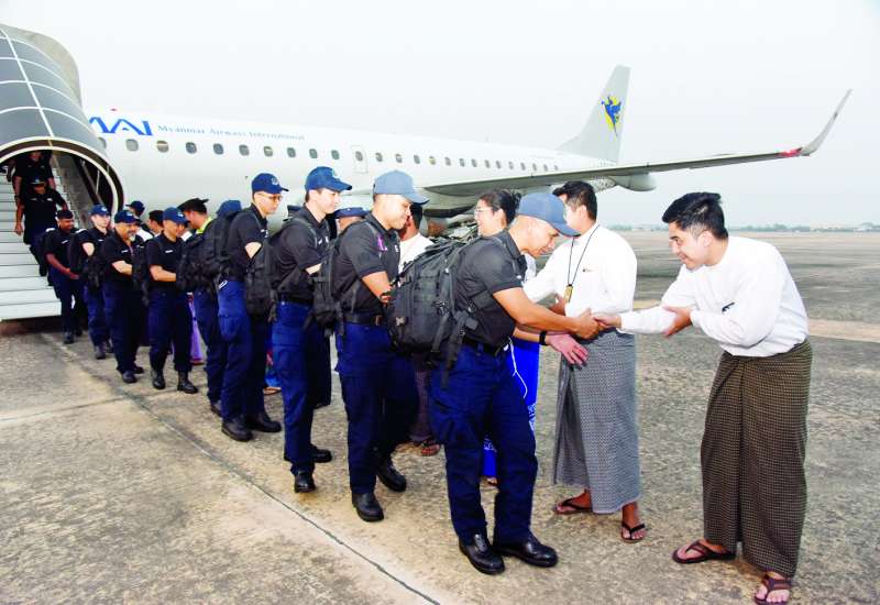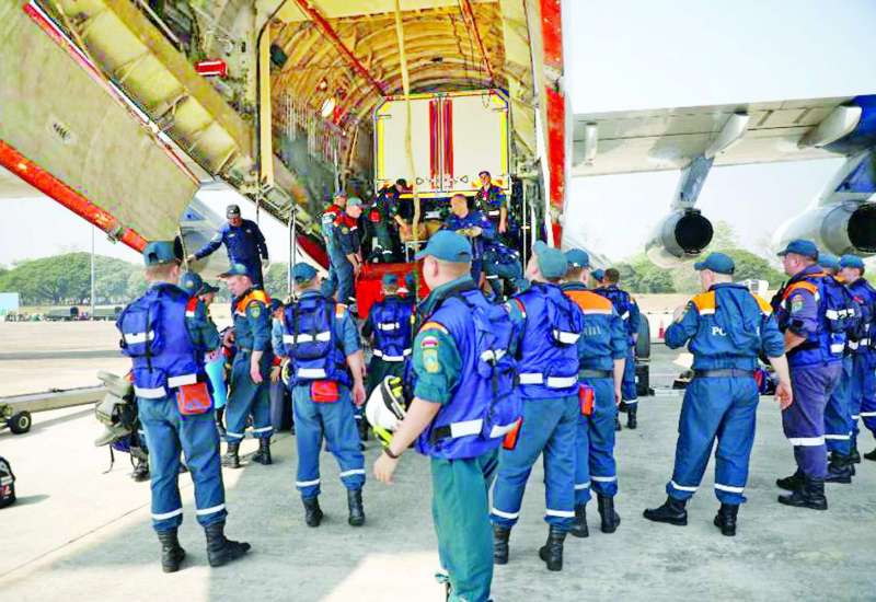 နိုင်ငံတော်အစိုးရအနေဖြင့် ငလျင်ဒဏ်သင့်ဒေသများရှိ ပျက်စီးဆုံးရှုံးမှုများကို အလျင်အမြန်စုံစမ်းစစ်ဆေးပြီး အချိန်နှင့်တစ်ပြေးညီ ကူညီကယ်ဆယ်ရေးလုပ်ငန်းများ ဆောင်ရွက်လျက်ရှိသည့်အပြင် ပြည်ပမှ လူသားချင်းစာနာထောက်ထားမှဆိုင်ရာ အကူအညီများကို လမ်းဖွင့်ပေးထားပြီးဖြစ်ရာ ယနေ့တွင် ငလျင်ဒဏ်သင့် ပြည်သူများအတွက် မလေးရှား၊ ထိုင်းနှင့် ရုရှားနိုင်ငံတို့မှ ကယ်ဆယ်ရေးအဖွဲ့များ၊ ဆရာဝန်များနှင့် သူနာပြုဆေးအဖွဲ့များ လူသားချင်းစာနာထောက်ထားမှုဆိုင်ရာ အကူအညီပစ္စည်းများ၊ ဆေးဝါးများသည် မြန်မာနိုင်ငံသို့ ထပ်မံရောက်ရှိကြသည်။