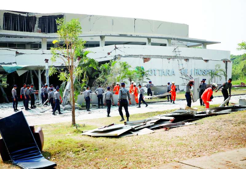 နိုင်ငံတော်စီမံအုပ်ချုပ်ရေးကောင်စီဥက္ကဋ္ဌ တပ်မတော်ကာကွယ်ရေးဦးစီးချုပ် ဗိုလ်ချုပ်မှူးကြီး မင်းအောင်လှိုင်သည် ကာကွယ်ရေးဦးစီးချုပ်ရုံးမှ အဆင့်မြင့်တပ်မတော်အရာရှိကြီးများ လိုက်ပါ၍ ယနေ့နံနက်ပိုင်းတွင် နေပြည်တော်ရှိ တပ်မတော်ဆေးရုံကြီး ထိခိုက်ဒဏ်ရာနှင့် အရိုးရောဂါကုသဆောင်၌ ငလျင်ဘေးဒဏ်ကြောင့် ထိခိုက်ဒဏ်ရာရရှိခဲ့သည့် ပြည်သူများနှင့် နိုင်ငံ့ဝန်ထမ်းများ၊ တပ်မတော်သားများနှင့် မိသားစုဝင်များအား ဆေးဝါးကုသပေးထားမှုအခြေအနေများကို သွားရောက်ကြည့်ရှုစစ်ဆေးသည်။