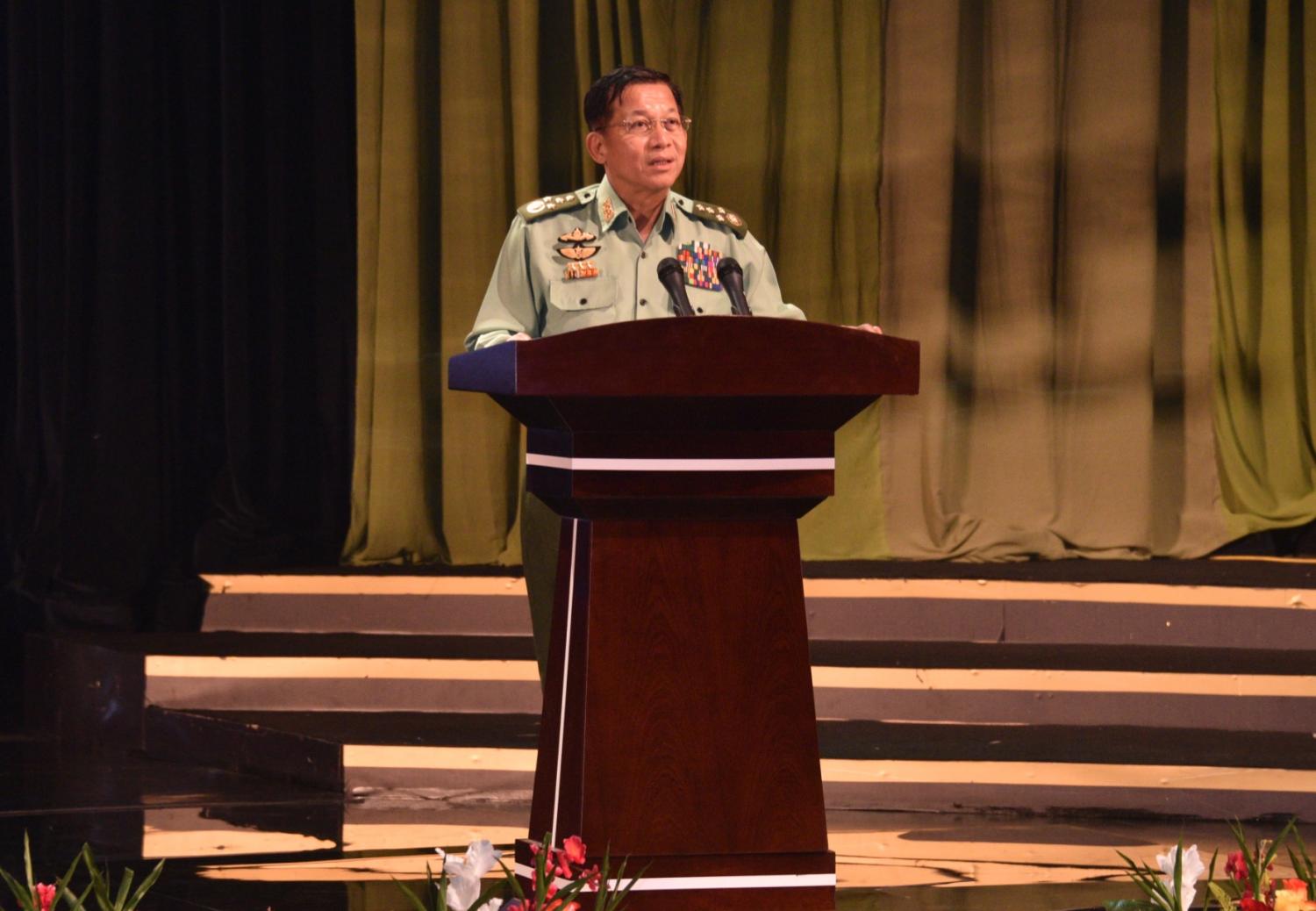 ပြန်ကြားရေးဝန်ကြီးဌာန မြန်မာ့အသံနှင့်ရုပ်မြင်သံကြား၏ (၇၅)နှစ်မြောက် စိန်ရတု နှစ်ပတ်လည်နေ့ အခမ်းအနားကို ယနေ့မွန်းလွဲပိုင်းတွင် နေပြည်တော်-တပ်ကုန်းရှိ မြန်မာ့အသံနှင့်ရုပ်မြင်သံကြား၌ ကျင်းပရာ နိုင်ငံတော်စီမံအုပ်ချုပ်ရေးကောင်စီ ဥက္ကဋ္ဌ၊ တပ်မတော်ကာကွယ်ရေးဦးစီးချုပ် ဗိုလ်ချုပ်မှူးကြီး မင်းအောင်လှိုင် တက်ရောက် အမှာစကား ပြောကြားသည်။