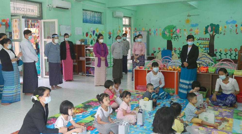လူမှုဝန်ထမ်း၊ ကယ်ဆယ်ရေးနှင့် ပြန်လည်နေရာ ချထားရေး ဝန်ကြီးဌာန၊ ပြည်ထောင် စုဝန် ကြီး၊ ဒေါက်တာသက်သက်ခိုင်သည် အမြဲတမ်းအတွင်းဝန်၊ လူမှုဝန်ထမ်းဦးစီးဌာန၊ ညွှန်ကြားရေး မှူးချုပ်နှင့် ဒုတိယညွှန်ကြားရေးမှူးချုပ်များနှင့်အတူ ယနေ့ နံနက် ၁၀ နာရီတွင် လူမှုဝန်ထမ်း၊ ကယ်ဆယ်ရေးနှင့် ပြန်လည်နေရာချထားရေးဝန်ကြီးဌာန၊ လူမှုဝန်ထမ်းဦးစီးဌာန ဝန်ထမ်း များ၏ အသက်(၃)နှစ်အောက် ကလေးများအတွက်ဖွင့်လှစ်ထားရှိသည့် မေမေ့ရင်ခွင် နေ့ ကလေးထိန်း ဌာနသို့ သွားရောက်၍ ကလေး ငယ်များကို ပြုစုစောင့်ရှောက်မှုအခြေအနေများကို ကြည့်ရှုကာ လိုအပ်သည်များကို မှာကြား၍ နေ့ကလေးထိန်းဌာနတွင် သား/သမီး ရင်သွေး ငယ်လေးများအား မုန့်၊ ပဲနို့နှင့် အရုပ် လက်ဆောင် ပစ္စည်းများပေးအပ်သည်။