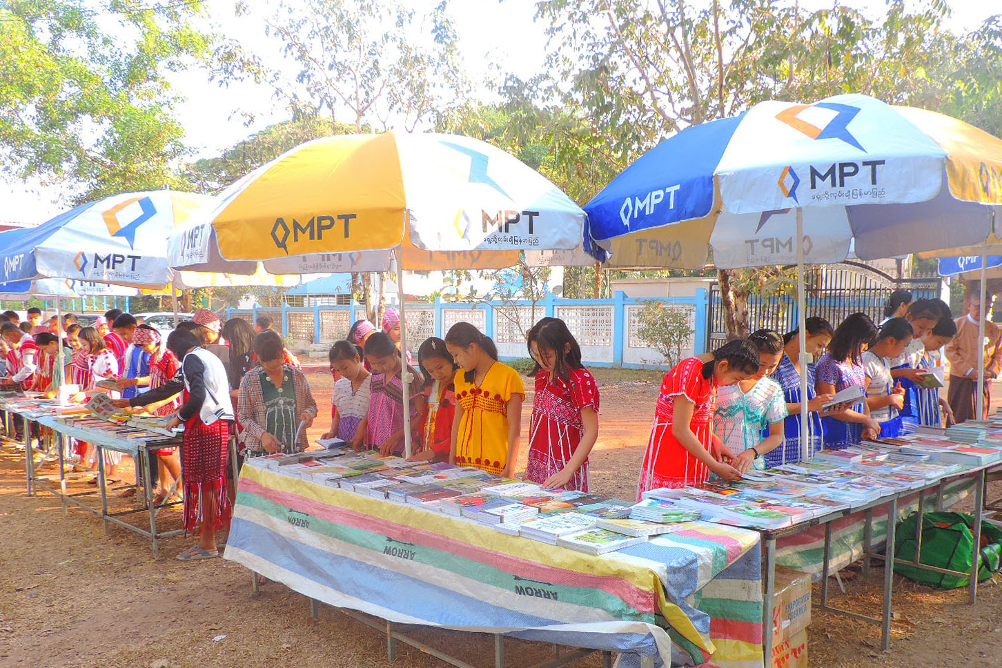 ကရင်ပြည်နယ်၊ ဘားအံမြို့တွင် (၇၃) နှစ်မြောက် ပြည်ထောင်စုနေ့ကို ကြိုဆိုဂုဏ်ပြုသော အားဖြင့် စာဖတ်ရှိန်မြှင့်တင်ရေးအတွက် ရည်ရွယ်ပြီး စာအုပ်ပြပွဲနှင့် စာအုပ်ဈေးရောင်းပွဲဖွင့်ပွဲကို ယနေ့ နံနက် (၈) နာရီအချိန်က ဘားအံခရိုင် ပြန်ကြားရေးနှင့် ပြည်သူ့ဆက်ဆံရေးဦးစီးဌာန လူထုအခြေပြုဗဟိုဌာန (Community Centre) တွင် ကျင်းပသည်။