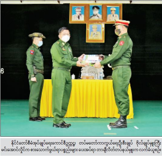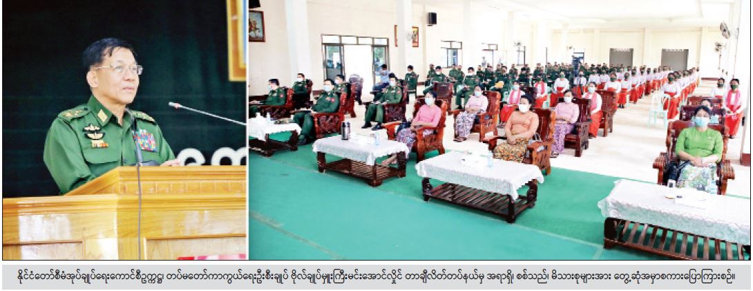 နိုင်ငံတော်စီမံအုပ်ချုပ်ရေးကောင်စီဥက္ကဋ္ဌ၊ တပ်မတော်ကာကွယ်ရေးဦးစီးချုပ် ဗိုလ်ချုပ်မှူးကြီး မင်းအောင်လှိုင်သည် ယနေ့မွန်းလွဲပိုင်းတွင် တာချီလိတ် တပ်နယ်မှ အရာရှိ၊ စစ်သည် မိသားစု များအား သွားရောက်တွေ့ဆုံအမှာစကား ပြောကြားသည်။