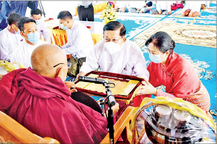 ဦးစွာ နိုင်ငံတော်စီမံအုပ်ချုပ်ရေးကောင်စီဥက္ကဋ္ဌ တပ်မတော်ကာကွယ်ရေး ဦးစီးချုပ် ဗိုလ်ချုပ်မှူးကြီး မင်းအောင်လှိုင် နှင့်ဇနီး ဒေါ်ကြူကြူလှ တို့သည် မဟာမင်္ဂလာ မဏ္ဍပ်တော်အတွင်းရှိ ဗုဒ္ဓ ရုပ်ပွားတော်မြတ်အား မြသပိတ်ဆွမ်းတော်၊ သစ်သီးပန်းမန်၊ သောက်တော်ရေချမ်းနှင့် ဆီမီးတို့ကို ကပ်လှူပူဇော်ကြသည်။