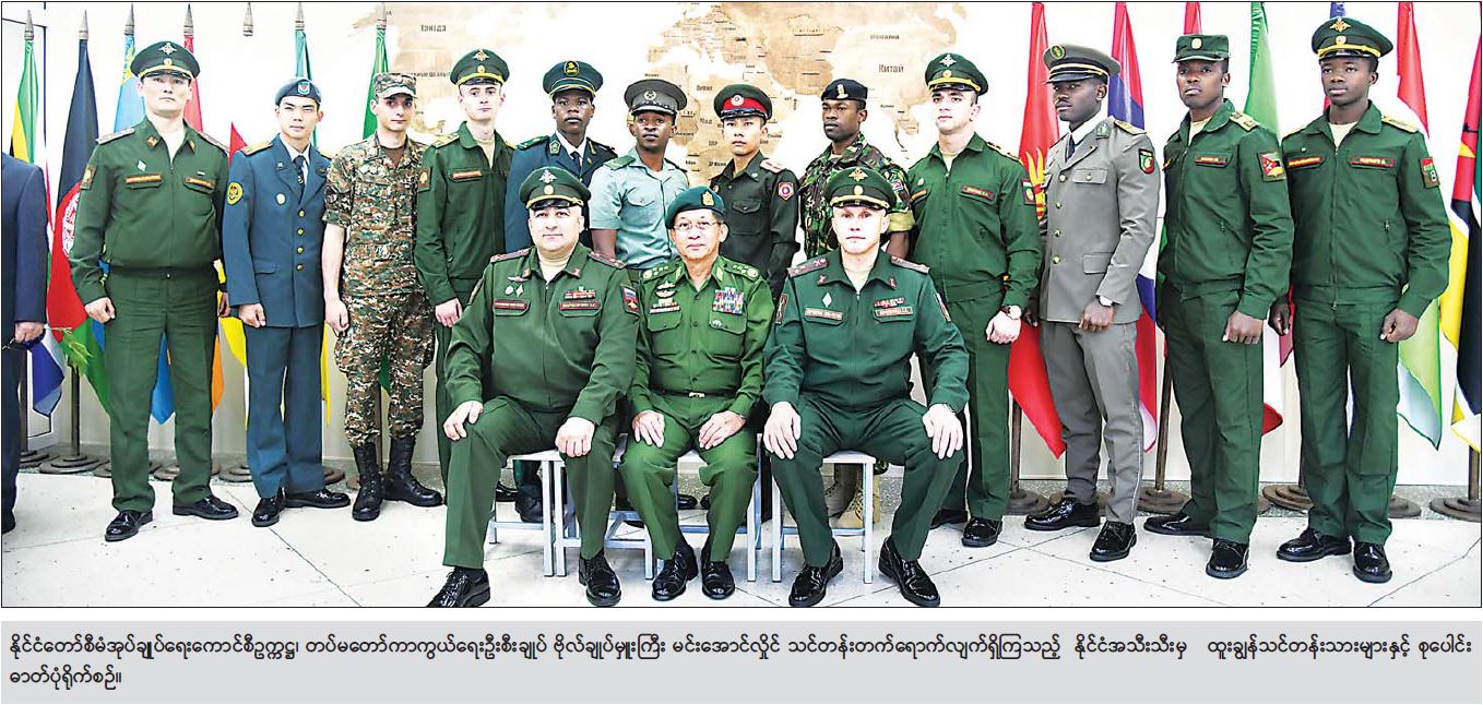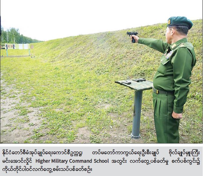 နိုင်ငံတော်စီမံ အုပ်ချုပ်ရေးကောင်စီဥက္ကဋ္ဌ၊ တပ်မတော်ကာကွယ်ရေးဦးစီးချုပ်နှင့် အဖွဲ့ဝင်များ သည် ယနေ့ဒေသစံတော်ချိန် နံနက်ပိုင်းတွင် Higher Military Command School သွားရောက် လေ့လာကြည့်ရှုကြရာ ကျောင်းအုပ်ကြီး Colonel Markochin Segeri Gregorivich နှင့် တာဝန်ရှိသူများက ကြိုဆိုနှုတ်ဆက်ကြပြီးနှုတ်ဆက်ကြသည်။ ယင်းနောက် နိုင်ငံတော်အတွက် အသက်စွန့်လွှတ်တာဝန် ထမ်းဆောင်ခဲ့ကြသည့် သူရဲကောင်းဆုတံဆိပ်ရရှိသူများကို ဂုဏ်ပြုထားသည့် သူရဲကောင်းရုပ်တုများအား ဂုဏ်ပြုပန်းခြင်းဖြင့် အလေးပြုပြီး လေ့လာ ကြည့်ရှုကြသည်။