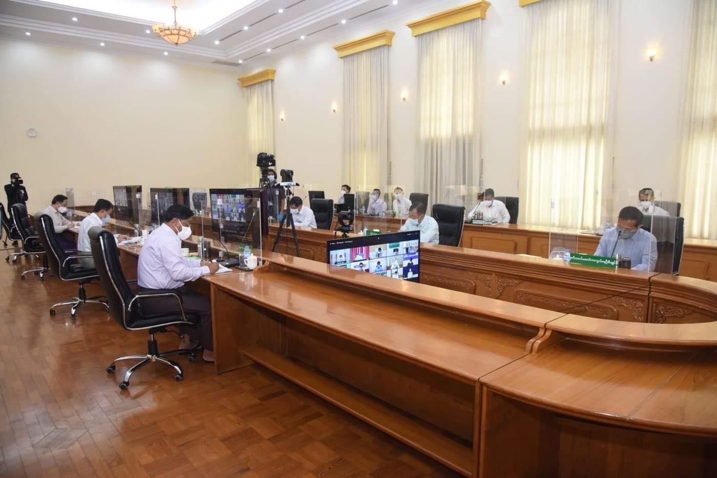 အစည်းအဝေးသို့ နိုင်ငံတော်စီမံအုပ်ချုပ်ရေးကောင်စီ ဒုတိယဥက္ကဋ္ဌ ဒုတိယတပ်မတော်ကာကွယ်ရေး ဦးစီးချုပ် ကာကွယ်ရေးဦးစီးချုပ် (ကြည်း) ဒုတိယဗိုလ်ချုပ်မှူးကြီးစိုးဝင်း၊ ကောင်စီအဖွဲ့ဝင် ဗိုလ်ချုပ်ကြီး တင်အောင်စန်း၊ ဒုတိယဗိုလ်ချုပ်ကြီး စိုးထွဋ်၊ ကျန်းမာရေးနှင့်အားကစားဝန်ကြီးဌာန ပြည်ထောင်စုဝန်ကြီး ဒေါက်တာ သက်ခိုင်ဝင်း၊ စီမံကိန်းဘဏ္ဍာရေးနှင့် စက်မှုဝန်ကြီးဌာန ပြည်ထောင်စုဝန်ကြီး ဦးဝင်းရှိန်၊ ကာကွယ်ရေးဦးစီးချုပ်ရုံး (ကြည်း)မှ တပ်မတော်အရာရှိကြီးများနှင့် တာဝန်ရှိသူများ တက်ရောက်ကြပြီး တိုင်းဒေသကြီးနှင့် ပြည်နယ် စီမံအုပ်ချုပ်ရေးကောင်စီဥက္ကဋ္ဌများက Video Conferencing ဖြင့် တက်ရောက်ကြသည်။