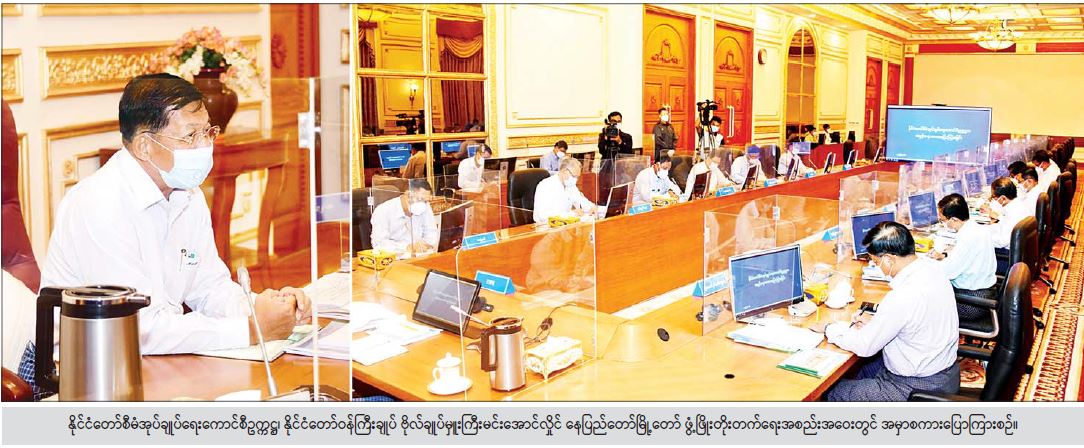 ယင်းနောက် အစည်းအဝေးသို့ တက်ရောက်လာကြသည့် ကောင်စီဝင်နှင့် ပြည်ထောင်စုဝန်ကြီးများက သက်ဆိုင်ရာ ကဏ္ဍအလိုက် အကောင်အထည်ဖော် ဆောင်ရွက်နေမှု အခြေအနေများကို ဖြည့်စွက်ရှင်း လင်းတင်ပြကြသည်။