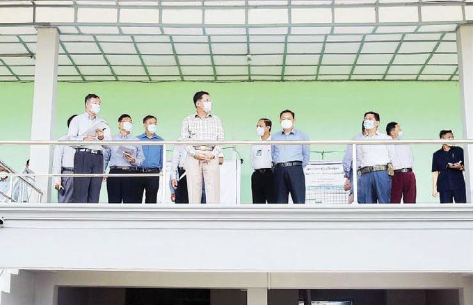 ဦးစွာ နိုင်ငံတော်စီမံအုပ်ချုပ်ရေးကောင်စီ ဥက္ကဋ္ဌ၊ နိုင်ငံတော်ဝန်ကြီးချုပ်နှင့် အဖွဲ့ဝင်များသည် ပြင်ဦးလွင် ခရိုင်အား ကစားလေ့ကျင့်ရေးစခန်းသို့ ရောက်ရှိ ကြပြီး အားကစားကွင်း အဆင့်မြှင့်တင်ခြင်းလုပ်ငန်း ဆောင်ရွက်နေမှု အခြေအနေများကို ကြည့်ရှုစစ်ဆေးရာ အားကစားနှင့်လူငယ်ရေးရာဝန်ကြီးဌာန ပြည်ထောင်စုဝန်ကြီး ဦးမင်းသိန်းဇံ၊ အားကစားနှင့် ကာယပညာဦးစီးဌာနမှ ညွှန်ကြားရေးမှူးချုပ် ဦးထွန်းမြင့်ဦးနှင့် တာဝန်ရှိသူများက အဆင့်မြှင့်တင်ခြင်း ဆောင်ရွက်နေသည့် အခြေအနေများကို တင်ပြကြသည်။