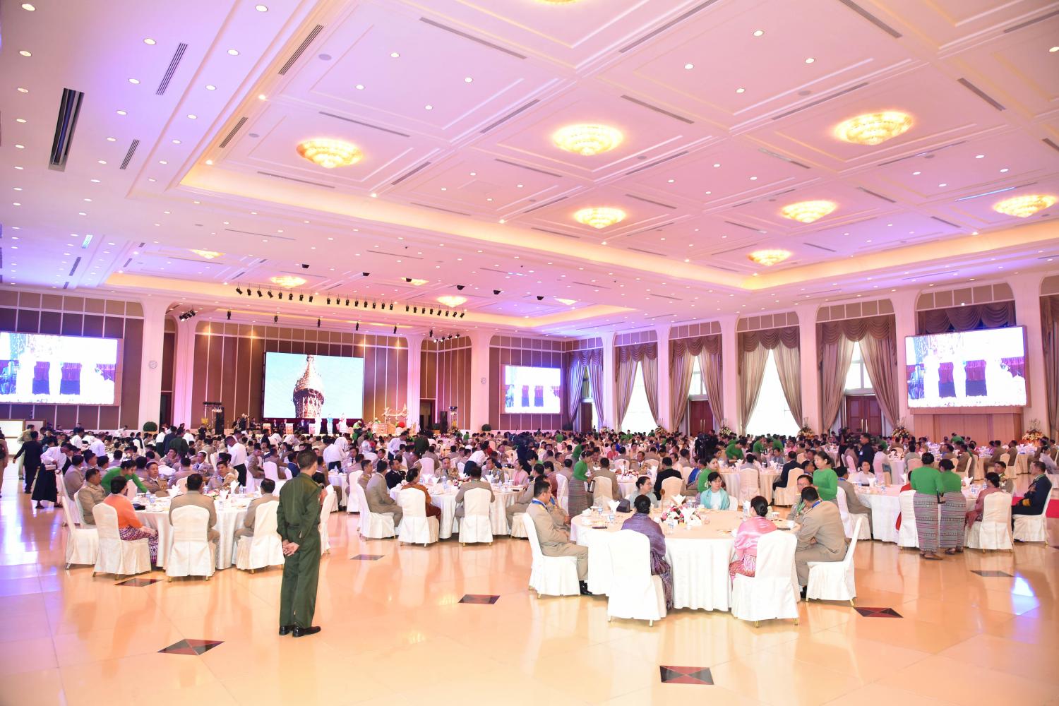 ထို့နောက် တပ်မတော်ကာကွယ်ရေးဦးစီးချုပ်နှင့် အဖွဲ့ဝင်များသည် တပ်မတော်စွမ်းရည် သတ္တိဆိုင်ရာ ဂုဏ်ထူးဆောင်တံဆိပ်နှင့် လက်မှတ်များချီးမြှင့်ခြင်း ခံရသူများနှင့် အခမ်းအနား တက်ရောက်လာကြသူများအား ဂုဏ်ပြုလက်ဖက်ရည်ဖြင့် တည်ခင်းဧည့်ခံသည်။