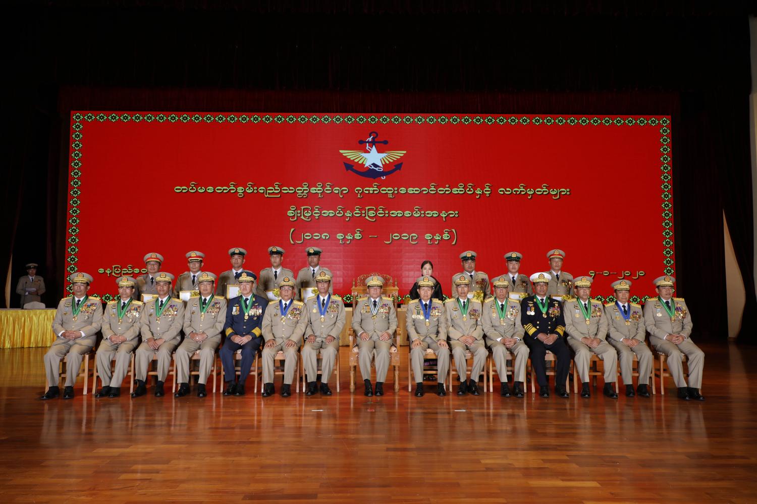 ၂၀၁၈ ခုနှစ်နှင့် ၂၀၁၉ ခုနှစ်တို့တွင် နိုင်ငံနှင့်ပြည်သူအတွက် အသက်ကို ပဓာနမထား၊ စွန့်လွှတ်စွန့်စားစွာ တာဝန်ထမ်းဆောင်ကြ သူများအား တပ်မတော်စွမ်းရည်သတ္တိဆိုင်ရာ ဂုဏ်ထူးဆောင် တံဆိပ်နှင့် လက်မှတ်များ ချီးမြှင့်အပ်နှင်းခြင်း အခမ်းအနားကို ယနေ့မွန်းလွဲပိုင်းတွင် နေပြည်တော်ရှိ ဇေယျာသီရိဗိမာန်၌ ကျင်းပရာ တပ်မတော်ကာကွယ်ရေးဦးစီးချုပ် ဗိုလ်ချုပ်မှူးကြီး မဟာသရေစည်သူ မင်းအောင်လှိုင် တက်ရောက်၍ ဂုဏ်ပြုအမှာစကား ပြောကြားပြီး ဂုဏ်ထူးဆောင်တံဆိပ်နှင့် လက်မှတ်များ ချီးမြှင့်အပ်နှင်းသည်။