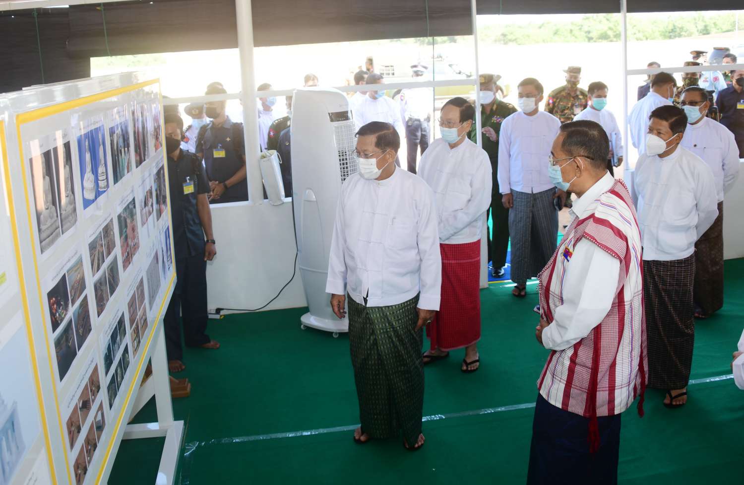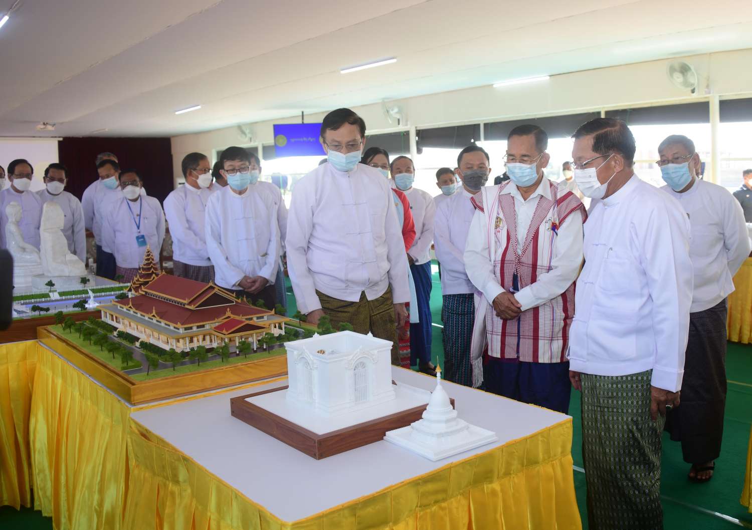 ယင်းနာက် နိုင်ငံတော်စီမံအုပ်ချုပ်ရေးကောင်စီဥက္ကဋ္ဌ နိုင်ငံတော်ဝန်ကြီးချုပ် နှင့်အခမ်းအနား တက်ရောက်လာကြသူများသည် မာရဝိဇယကျောက်ဆစ်ဗုဒ္ဓရုပ်ပွား တော်မြတ်ကြီးတည်ထား ကိုးကွယ်မည့် ပုံစံအတိုင်းပြုလုပ်ပုံဖော်ထားသည့် ဥယျာဉ်တော် အကွက်ချပုံစံငယ်များ၊ ရုပ်ပွားတော်ကြီးပုံစံငယ်များ၊ ပိဋကတ်ကျောက်စာရုံနှင့် ကျောက်စာနမူနာများ၊ ရုပ်ပွားတော်မြတ်ကြီး၏ ပုလ္လင်တော်အပိုင်း ၁ နှင့် ၂ တို့အား နေရာချထားမှုနှင့် ဆင်းတုတော်အပိုင်း ၁ နှင့် ၄ တို့အား CNC Machine များဖြင့် ထုဆစ်နေမှုအခြေအနေများအား လှည့်လည်ကြည့်ရှုခဲ့ကြောင်း သတင်းရရှိသည်။