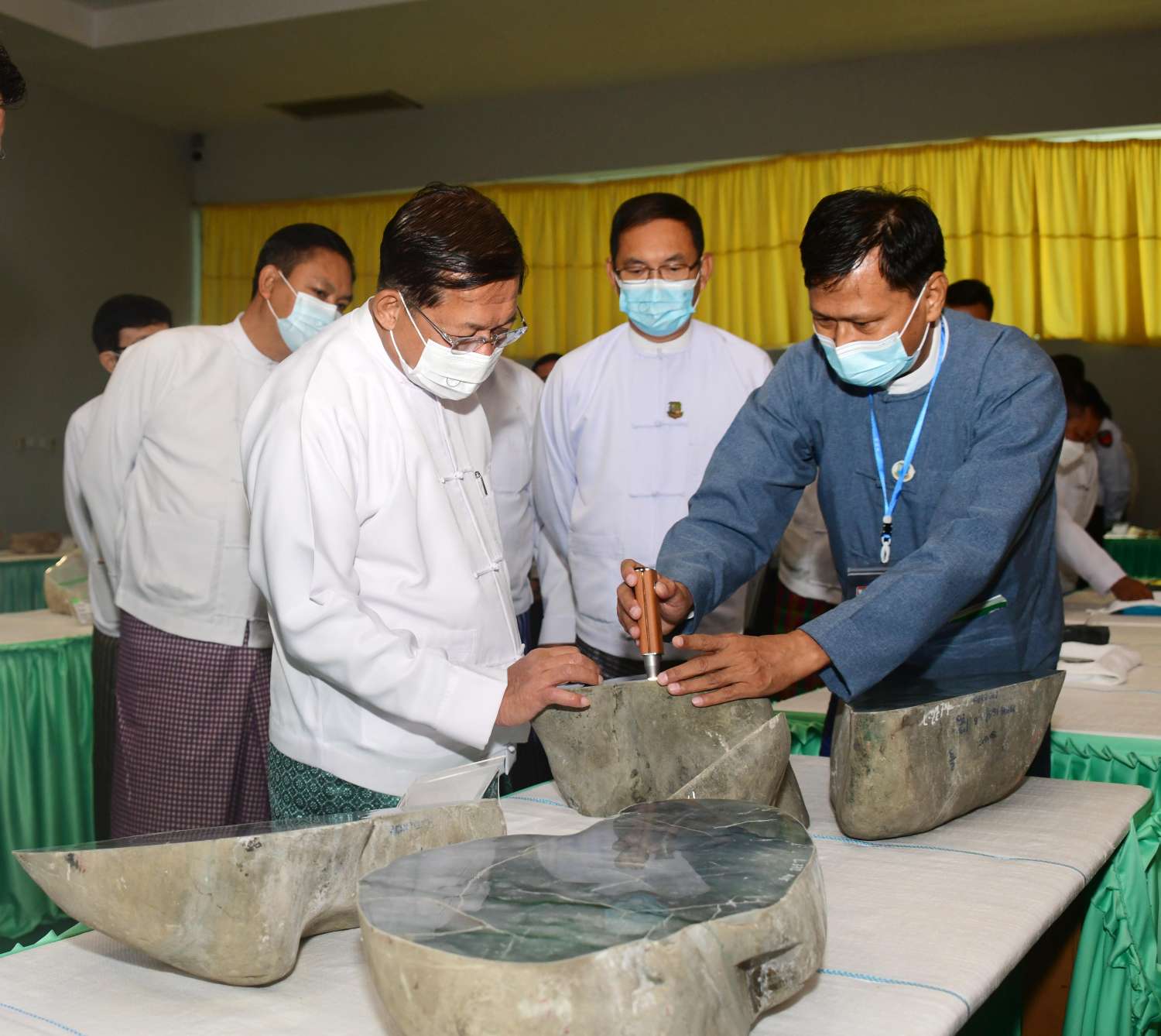 ၂၀၂၁ ခုနှစ်၊ ပုလဲအတွဲများနှင့် ကျောက်စိမ်းအတွဲများပြပွဲ (Mini Gems Emporium) အခမ်းအနားကို ယနေ့နံနက်ပိုင်းတွင် နေပြည်တော်ရှိ မဏိရတနာ ကျောက်စိမ်းခန်းမ၌ ကျင်းပပြုလုပ်ရာ နိုင်ငံတော်စီမံအုပ်ချုပ်ရေးကောင်စီဉက္ကဋ္ဌ၊ နိုင်ငံတော်ဝန်ကြီးချုပ် ဗိုလ်ချုပ်မှူးကြီး မင်းအောင်လှိုင် တက်ရောက်ချီးမြှင့်သည်။