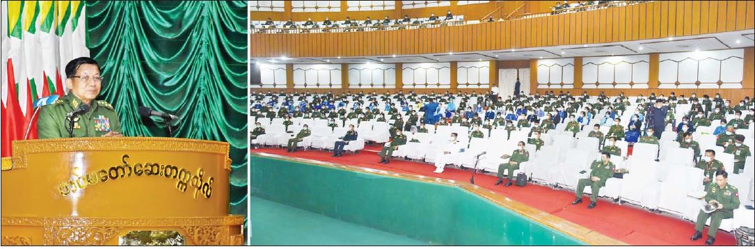 ဦးစွာ စစ်ရာထူးခန့်ချုပ် ဒုတိယဗိုလ်ချုပ်ကြီး လင်းအောင်နှင့် တပ်မတော်လေ့ကျင့် ရေးအရာရှိချုပ် ဒုတိယဗိုလ်ချုပ်ကြီး ဇော်မျိုးတင်တို့က ၁၉၉၉ ခုနှစ် မှ ၂၀၂၁ ခုနှစ် အထိ တပ်မတော် ဆေးတက္ကသိုလ်၊ တပ်မတော်သူနာပြုနှင့် ဆေးဘက်ပညာ တက္ကသိုလ်၊ တပ်မတော်(ကြည်း) ဗိုလ်သင်တန်းကျောင်း(မှော်ဘီ)တို့မှ အရာရှိများ လေ့ကျင့်မွေးထုတ်ပေးနိုင်ခဲ့မှု၊ စာပေသင်ကြားပေးနိုင်ခဲ့မှုနှင့် လက်ရှိတာဝန်ထမ်း ဆောင်နေမှု အခြေအနေများနှင့် ပတ်သက်၍ ရှင်းလင်းတင်ပြသည်။