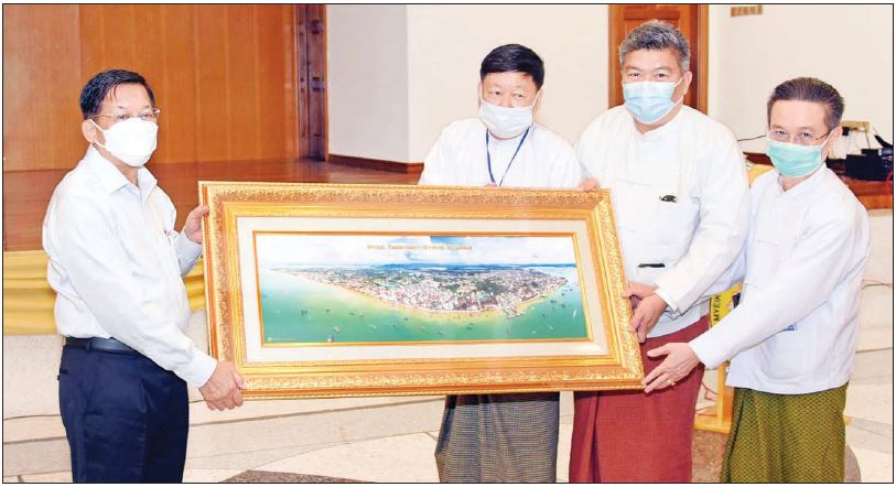 ယင်းနောက် နိုင်ငံတော်စီမံအုပ်ချုပ်ရေးကောင်စီဥက္ကဋ္ဌ နိုင်ငံတော်ဝန်ကြီးချုပ်အား မြိတ်ကော်ပိုရေးရှင်း အများနှင့်သက်ဆိုင်သောကုမ္ပဏီလီမိတက်ဥက္ကဋ္ဌ ဦးလှသန်း နှင့်တာဝန်ရှိသူများက မြိတ်မြို့ဓာတ်ပုံအား အမှတ်တရပေးအပ်သည်။