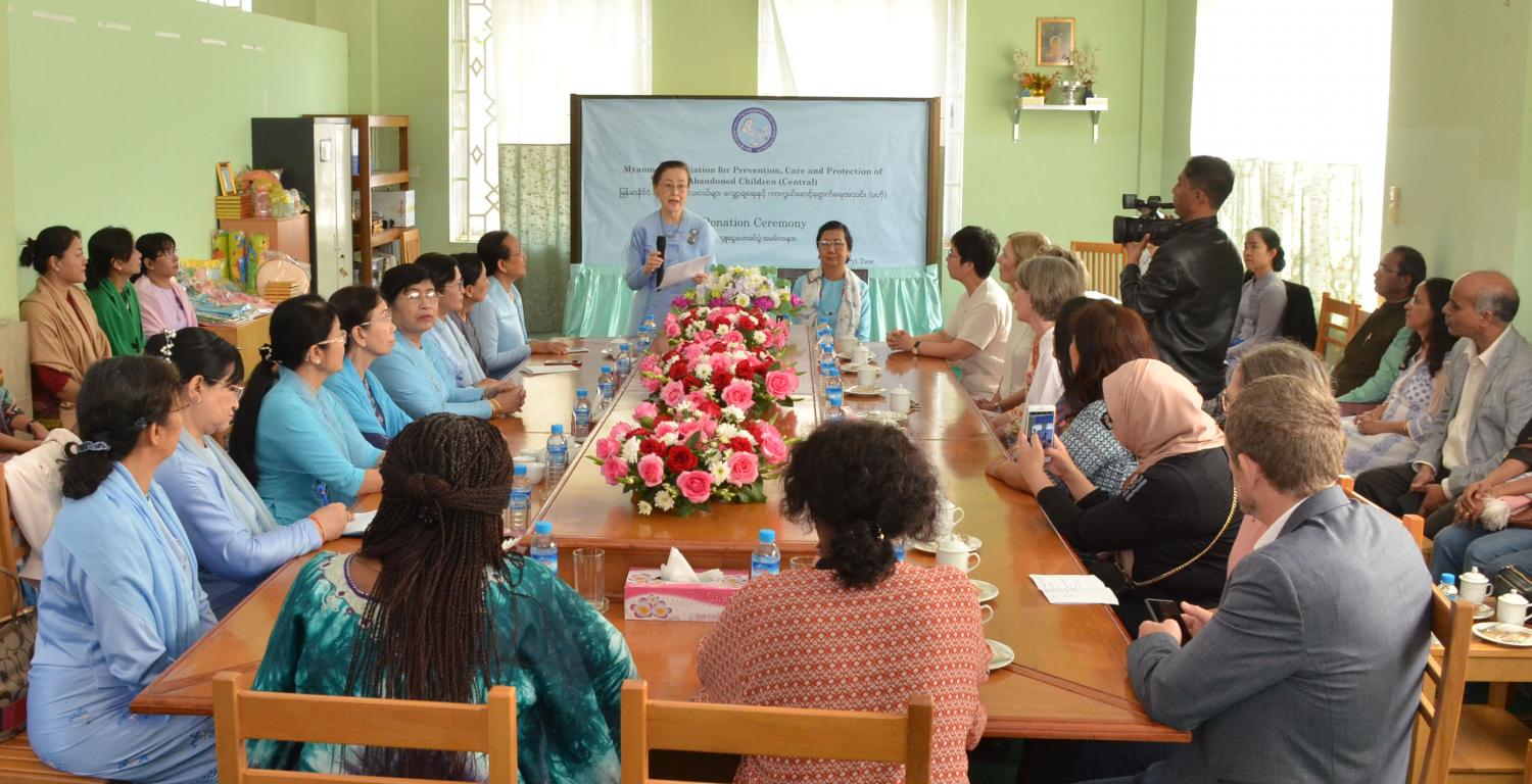 မြန်မာနိုင်ငံ ရင်ခွင်မဲ့ကလေးငယ်များ လျှော့ချရေးနှင့် ကာကွယ်စောင့်ရှောက်ရေး အသင်း(ဗဟို)မှ ဆောင်ရွက်လျက်ရှိသော ရင်ခွင်မဲ့ကလေးငယ်များ ကာကွယ် စောင့်ရှောက်ရေးအတွက် Diplomatic and International Golfer’s Affiliation of Yangon က လှူဒါန်းငွေ အမေရိကန်ဒေါ်လာ (၃၀၀၀)၊ ကလေးများအတွက် အဝတ်အထည်နှင့်ကစားစရာများကို စင်္ကာပူနိုင်ငံသံအမတ်ကြီး မစ္စ ဗန်နက်ဆာ ချန် ယွမ် ရင် ကလည်းကောင်း၊ မြန်မာနိုင်ငံဆိုင်ရာ ဟန်ဂေရီဂုဏ်ထူးဆောင် ကောင်စစ်ဝန် ဒေါ်တင့်တင့်လွင်၊ မြန်မာနိုင်ငံဆိုင်ရာ ချက်ဂုဏ်ထူးဆောင်ကောင်စစ်ဝန် ဒေါ်လှလှဝေနှင့် မြန်မာနိုင်ငံဆိုင်ရာ ယူကရိန်းဂုဏ်ထူးဆောင်ကောင်စစ်ဝန် ဦးအောင်လှိုင်ဦးနှင့် ဇနီးတို့က ငွေကျပ်(၃) သိန်းစီကို လည်းကောင်း ယနေ့နံနက်ပိုင်းတွင် လာရောက်ပေးအပ်လှူဒါန်းရာ အသင်းဥက္ကဋ္ဌ ဒေါ်မေယဉ်ထွန်းက ကြိုဆိုနုတ်ခွန်းဆက် စကားပြောကြားပြီး စင်ကာပူနိုင်ငံသံ အမတ်ကြီးက လှူဒါန်းရခြင်းအကြောင်းကို ရှင်းလင်းပြောကြားသည်။