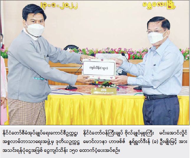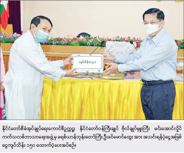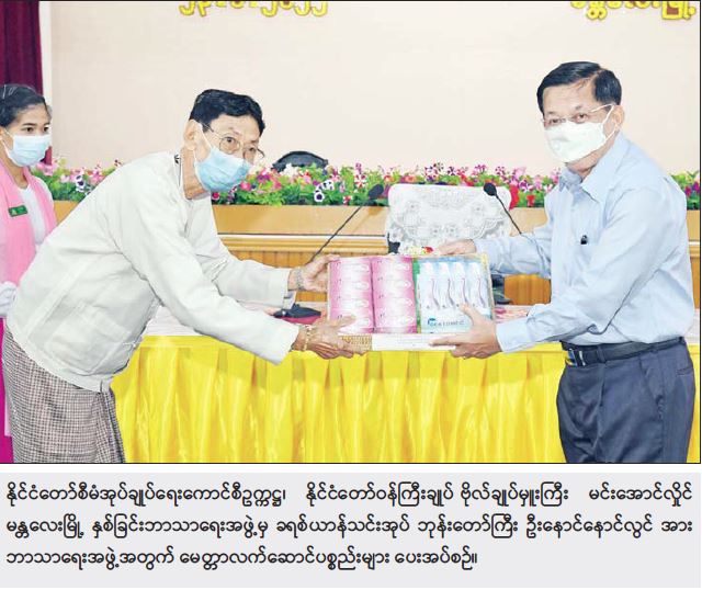 ယင်းနောက် နိုင်ငံတော်စီမံအုပ်ချုပ်ရေးကောင်စီဥက္ကဋ္ဌ၊ နိုင်ငံတော်ဝန်ကြီးချုပ်က မန္တလေးမြို့ရှိ ဘာသာရေးအသင်းအဖွဲ့များအတွက် မေတ္တာလက်ဆောင်ပစ္စည်းများနှင့် အသင်းရန်ပုံငွေအဖြစ် တစ်သင်းလျှင်ကျပ်သိန်း ၁၅၀ ထောက်ပံ့ပေးအပ်ရာဘာသာရေး ခေါင်းဆောင် အသီးသီးက လက်ခံရယူသည်။
