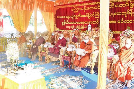 ထို့နောက် နိုင်ငံတော်စီမံအုပ်ချုပ်ရေးကောင်စီဥက္ကဋ္ဌ နိုင်ငံတော်ဝန်ကြီးချုပ်၊ ဇနီးနှင့် မိသားစုဝင်များက ရတနာစိန်ဖူးတော်၊ ငှက်မြတ်နားတော်၊ ရွှေထီးတော်နှင့် လှူဖွယ် ပစ္စည်းများအား နိုင်ငံတော် ဩဝါဒါစရိယ၊ စလင်းဆရာတော်ကြီးထံ ဆက်ကပ်လှူဒါန်းကြသည်။ ဆက်လက်ပြီး နိုင်ငံတော်စီမံအုပ်ချုပ်ရေး ကောင်စီဝင်များ၊ တွဲဖက်အတွင်း ရေးမှူးနှင့် ပြည်ထောင်စုဝန်ကြီးများက လှူဖွယ်ပစ္စည်းများအား သံဃာတော် အရှင်သူမြတ်များထံ ဆက်ကပ်လှူဒါန်းကြသည်။