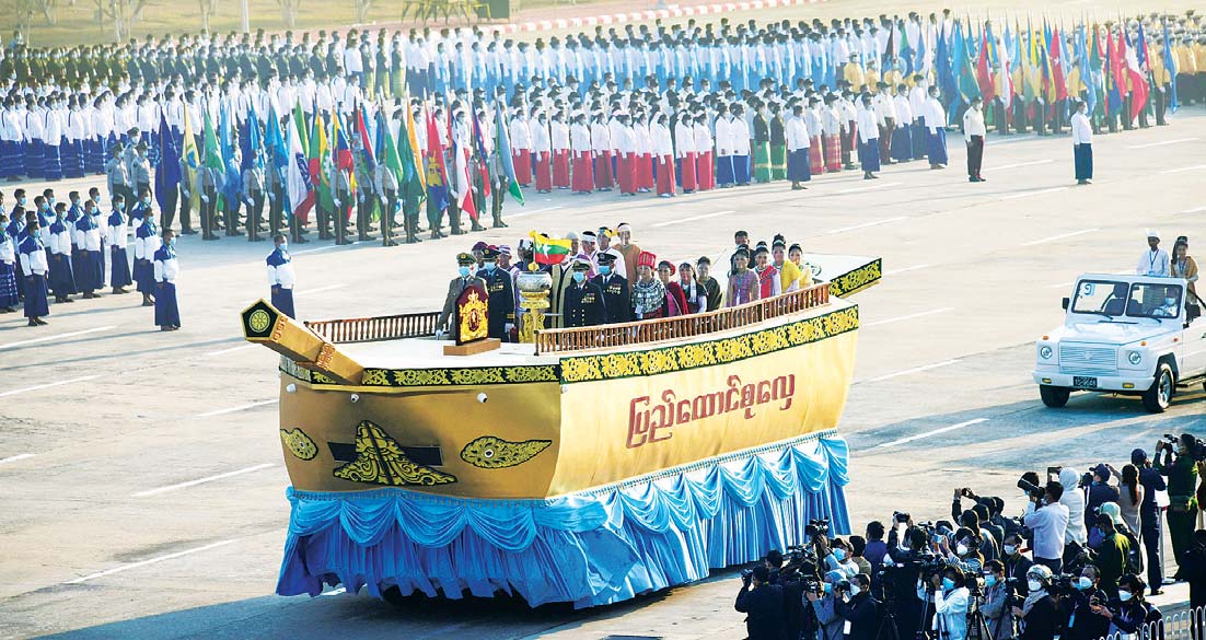 ထို့နောက် နိုင်ငံတော်စီမံအုပ်ချုပ်ရေးကောင်စီဥက္ကဋ္ဌ နိုင်ငံတော်ဝန်ကြီးချုပ်နှင့် ဇနီးတို့သည် တိုင်းဒေသကြီးနှင့် ပြည်နယ်များအလိုက် ကိုယ်စားပြု အလှပြယာဉ်များနှင့် ဂုဏ်ပြုအကအဖွဲ့ များအား ရင်းရင်းနှီးနှီးလက်ပြနှုတ်ဆက်ခဲ့ကြောင်း သတင်းရရှိသည်။