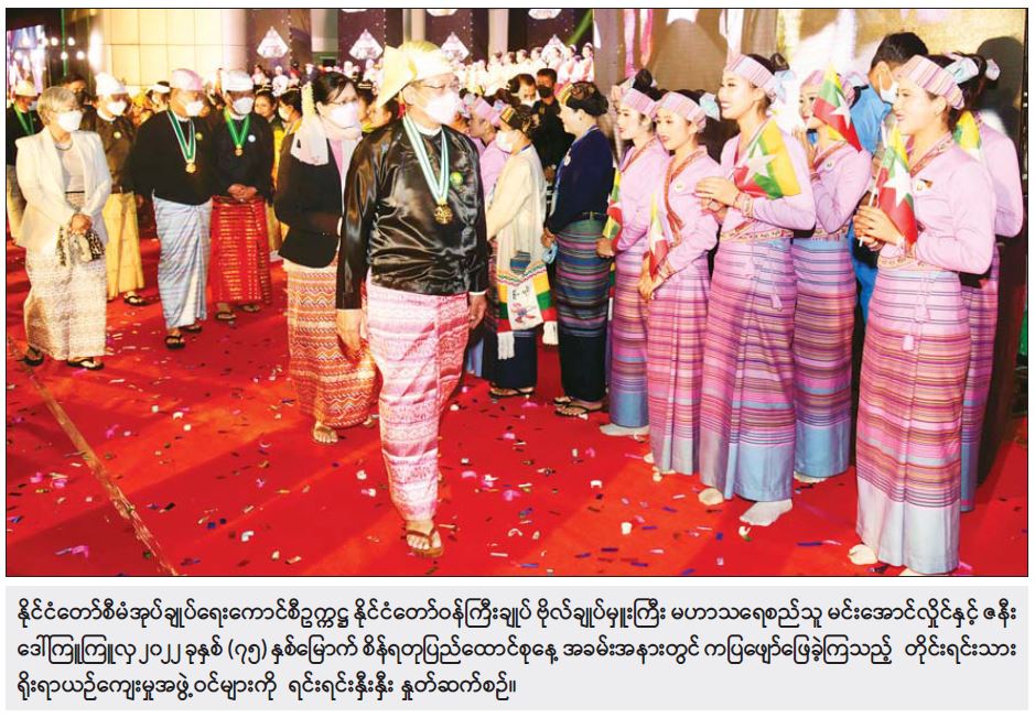 ဂုဏ်ပြုညစာစားပွဲသို့ နိုင်ငံတော်စီမံ အုပ်ချုပ်ရေးကောင်စီဝင်များနှင့် ၎င်းတို့၏ ဇနီးများ၊ တပ်မတော်မှအငြိမ်းစား ဗိုလ်ချုပ်ကြီးများနှင့် ဒုတိယ ဗိုလ်ချုပ်ကြီးများ၊ ပြည်ထောင်စု တရားသူကြီးချုပ် ဦးထွန်းထွန်းဦး၊ ပြည်ထောင်စုရွေးကောက်ပွဲကော်မရှင်ဥက္ကဋ္ဌ၊ ပြည်ထောင်စု ဝန်ကြီးများနှင့် ၎င်းတို့၏ဇနီးများ၊ ပြည်ထောင်စုစာရင်းစစ်ချုပ်၊ ပြည်ထောင်စုရာထူးဝန် အဖွဲ့ဥက္ကဋ္ဌ၊ နေပြည်တော်ကောင်စီဥက္ကဋ္ဌ၊ တိုင်းဒေသကြီးနှင့် ပြည်နယ်ဝန်ကြီးချုပ်များ၊ မြန်မာ နိုင်ငံတော်ဗဟိုဘဏ်ဥက္ကဋ္ဌ၊ အဂတိလိုက်စားမှုတိုက်ဖျက်ရေး ကော်မရှင်ဥက္ကဋ္ဌ၊ တပ်မတော် အရာရှိကြီးများနှင့် ၄င်းတို့၏ဇနီးများ၊ နိုင်ငံတော်စီမံ အုပ်ချုပ်ရေးကောင်စီဥက္ကဋ္ဌ၏ အကြံပေး ပုဂ္ဂိုလ်များ၊ ပြည်ထောင်စုတရား လွှတ်တော်ချုပ် တရားသူကြီးများ၊ နိုင်ငံတော်ဖွဲ့စည်းပုံ အခြေခံဥပဒေဆိုင်ရာ ခုံရုံးအဖွဲ့ဝင်များ၊ ပြည်ထောင်စု ရွေးကောက်ပွဲ ကော်မရှင်အဖွဲ့ဝင်များ၊ နေပြည်တော်တိုင်းစစ်ဌာန ချုပ်တိုင်းမှူးနှင့်ဇနီး၊ ဒုတိယဝန်ကြီးများ၊ ပြည်ထောင်စုရာထူးဝန် အဖွဲ့ဝင်များ၊ မြန်မာနိုင်ငံ တော်ဗဟိုဘဏ်ဒုတိယ ဥက္ကဋ္ဌများ၊ မြန်မာနိုင်ငံအမျိုးသား လူ့အခွင့်အရေးကော်မရှင်ဒုတိယဥက္ကဋ္ဌ၊ နေပြည်တော်ကောင်စီဝင်များ၊ တိုင်းဒေသကြီးနှင့် ပြည်နယ်များမှတိုင်းရင်းသား လူမျိုးရေးရာဝန်ကြီးများ၊ အဂတိလိုက်စားမှု တိုက်ဖျက်ရေး ကော်မရှင်အဖွဲ့ဝင်များ၊ နေပြည်တော်စည်ပင်သာယာရေး ကော်မတီ၊ ဒုတိယမြို့တော်ဝန်၊ ငြိမ်းချမ်းရေးလုပ်ငန်းစဉ် ဦးဆောင်အဖွဲ့ဝင်များ၊ တစ်နိုင်ငံလုံး ပစ်ခတ် တိုက်ခိုက်မှု ရပ်စဲရေး သဘောတူစာချုပ်(NCA) လက်မှတ်ရေးထိုးထားသည့် တိုင်းရင်းသားလက်နက်ကိုင်အဖွဲ့များမှ ခေါင်းဆောင်များနှင့် ကိုယ်စားလှယ်များ၊ နိုင်ငံရေးပါတီများမှ ဥက္ကဋ္ဌများနှင့် ကိုယ်စားလှယ်များ၊ ဌာနဆိုင်ရာ တာဝန်ရှိသူများ၊ တိုင်းဒေသကြီးနှင့် ပြည်နယ်များမှ တိုင်းရင်းသား ယဉ်ကျေးမှု အဖွဲ့များနှင့် ဖိတ်ကြားထားသူများ တက်ရောက်ခဲ့ကြကြောင်း သတင်းရရှိသည်။