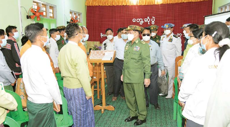 ထို့နောက် နိုင်ငံတော်စီမံအုပ်ချုပ်ရေးကောင်စီဥက္ကဋ္ဌ နိုင်ငံတော်ဝန်ကြီးချုပ်က ဒေသဖွံ့ဖြိုးတိုး တက်ရေးဆိုင်ရာများနှင့် ပတ်သက်၍ ပြောကြားရာ၌ မိမိအနေဖြင့် ယခုကဲ့သို့ နိုင်ငံတော်အဆင့် တာဝန်ရှိသူများနှင့်အတူ လာရောက်ခြင်းသည် ဒေသဖွံ့ဖြိုးတိုးတက်ရေးအတွက် လိုအပ်သည် များကို မှန်မှန်ကန်ကန်နှင့် မြန်ဆန်စွာ ဖြည့်ဆည်းပေးရေး လာရောက်ခြင်းဖြစ် သည့်အတွက် ဒေသ၏ ယေဘူယျ အခြေအနေ နှင့် ဒေသ၏လိုအပ်ချက်များကို အချိန်တိုအတွင်း ထိထိရောက်ရောက် တင်ပြကြရန် လိုကြောင်း၊ ဒေသအတွင်း လာရောက်တာဝန်များကို ထမ်းဆောင်နေကြသည့် ဌာနဆိုင်ရာဝန်ထမ်းများ၊ နယ်မြေခံတပ်များနှင့် ဒေသခံပြည်သူလူထုတို့ လက်တွဲညီညီ ဆောင်ရွက်ပြီးဒေသနှင့် ဒေသခံပြည်သူလူထု၏ လူမှုစီးပွားဘဝဖွံ့ဖြိုး တိုးတက်စေရေး ဝိုင်းဝန်းပူးပေါင်း ဆောင်ရွက်ပေးနိုင်ရမည်ဖြစ်ကြောင်း၊ နိုင်ငံတော်အစိုးရ အနေဖြင့် ဒေသဖွံ့ဖြိုးတိုးတက်ရေးဆိုင်ရာ လိုအပ်ချက်များကို တတ်စွမ်းသရွေ့အမြန်ဆုံး ဖြည့်ဆည်း ဆောင်ရွက်ပေးသွားမည်ဖြစ်ကြောင်း။