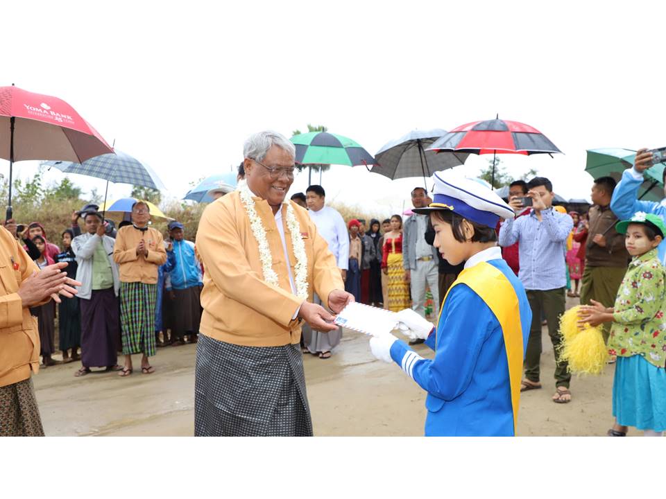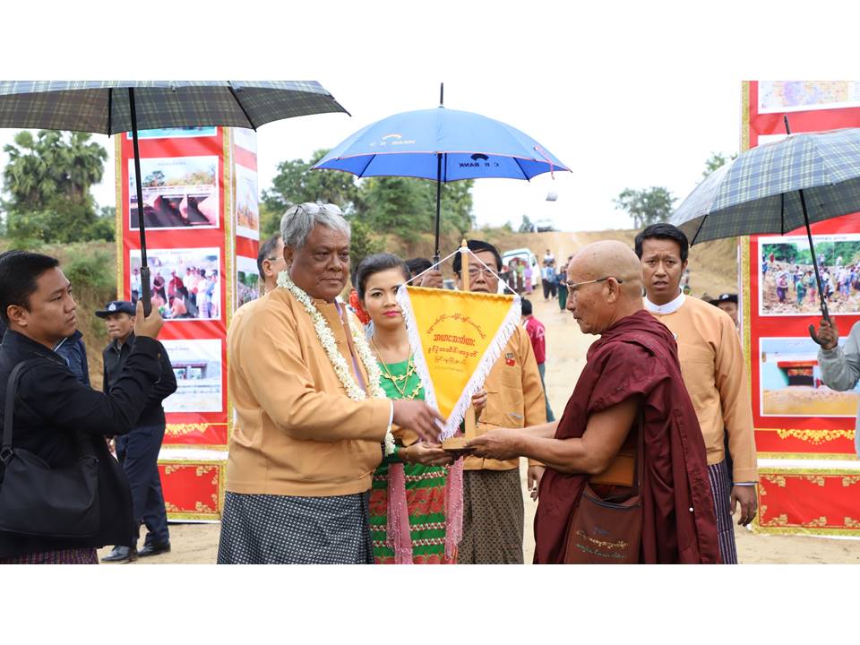 မိမိတို့ တိုင်းဒေသကြီးအစိုးရအဖွဲ့အနေဖြင့်လည်း ငါးကင်း-ကံသုံးဆင့်-ကျောက္ကာ(တ) လမ်းပိုင်းများ ဖြစ်သည့် မုံရွာမြို့နယ်အပိုင်းတွင် ၂၀၁၆-၂၀၁၇ ဘဏ္ဍာနှစ်၌ Box Culvert (၁)စင်း၊ ကျောက်ရိုးစီ ကွန်ကရစ်တံတား(၂)စင်း၊ ကုန်ကျငွေကျပ် (၃၈ ဒသမ ဝဝ)သန်း နှင့် ၂၀၁၈-၂၀၁၉ ဘဏ္ဍာနှစ်၌ ကျောက်လမ်း (၂/၂ဒသမ၇)မိုင်ကို ကုန်ကျငွေ ကျပ်(၁၄၆ ဒသမ ၆၀) သန်းဖြင့် လည်းကောင်း၊ အရာတော်မြို့နယ် အပိုင်းတွင် ၂၀၁၈-၂၀၁၉ ဘဏ္ဍာနှစ်၌ ဂျင်းလမ်း(၀/၆)မိုင်၊ ကုန်ကျငွေကျပ်(၂၇)သန်း၊ ကျောက်လမ်း(၁)ဖာလုံ၊ ကုန်ကျငွေကျပ်(၆ ဒသမ ၆၀၀)သန်းဖြင့် လည်ကောင်း၊ မြင်းမူမြို့နယ် အပိုင်းတွင် ၂၀၁၈-၂၀၁၉ ဘဏ္ဍာနှစ်၌ လွှတ်တော်ရန်ပုံငွေဖြင့် ကွန်ကရစ်လမ်း(၀/၂ ဒသမ ၅)မိုင်၊ ဂျင်းလမ်း (၀/၄ ဒသမ ၅) မိုင် နှင့် Box Culvert (၁)စင်း ကုန်ကျငွေကျပ် (၄)သန်းဖြင့် လည်းကောင်း ဆောင်ရွက်ပေးခဲ့ပြီး ဖြစ်ကြောင်း၊ မိမိတို့တိုင်းဒေသကြီးအတွင်း ကျေးလက်လမ်းတံတားများ ကောင်းမွန်ရေးအတွက် စိတ်အားထက်သန်စွာနဲ့ ပါဝင်ဆောင်ရွက်ခဲ့တဲ့ ဓမ္မစေတီဆရာတော်၊ အလှူရှင်များ နှင့် ကျေးရွာပြည်သူများအား အထူးကျေးဇူးတင်ရှိကြောင်းနှင့် ကျေးရွာနေ ပြည်သူများမှ လမ်း၊ တံတားများ ရေရှည်တည်တံ့အောင် ဝိုင်းဝန်းထိန်းသိမ်း ဆောင်ရွက်ပေးကြဖို့” တိုက်တွန်းကြောင်း ပြောကြားခဲ့သည်။
