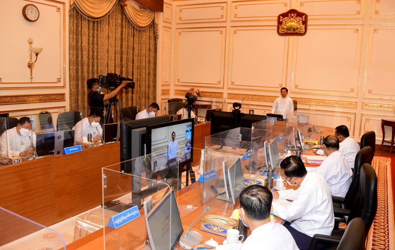 အစည်းအဝေးသို့ နိုင်ငံတော်စီမံအုပ်ချုပ်ရေးကောင်စီ ဒုတိယဥက္ကဋ္ဌ၊ ဒုတိယ ဝန်ကြီးချုပ် ဒုတိယဗိုလ်ချုပ်မှူးကြီး စိုးဝင်းနှင့် အစိုးရအဖွဲ့ဝင် ပြည်ထောင်စုဝန်ကြီး များ တက်ရောက်ကြပြီး တိုင်းဒေသကြီးနှင့် ပြည်နယ်ဝန်ကြီးချုပ်များက Video Conferencing ဖြင့် တက်ရောက် ကြသည်။