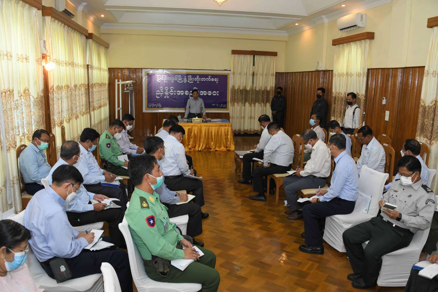 နိုင်ငံတော်စီမံအုပ်ချုပ်ရေးကောင်စီဥက္ကဋ္ဌ၊ နိုင်ငံတော်ဝန်ကြီးချုပ် ဗိုလ်ချုပ်မှူးကြီး မင်းအောင်လှိုင်သည် ယနေ့နံနက်ပိုင်းတွင် မန္တလေးတိုင်းဒေသကြီး ပြင်ဦးလွင်ခရိုင်နှင့် မြို့နယ်အတွင်းရှိ ဌာနဆိုင်ရာဝန်ထမ်းများအား ပြင်ဦးလွင်မြို့၊ နိုင်ငံတော်အစိုးရ ဧည့်ဂေဟာရှိ အစည်းအဝေးခန်းမ၌ တွေ့ဆုံ၍ မြို့ဖွံ့ဖြိုးတိုးတက်ရေးဆိုင်ရာ ကိစ္စရပ်များအား ဆွေးနွေးမှာကြားသည်။