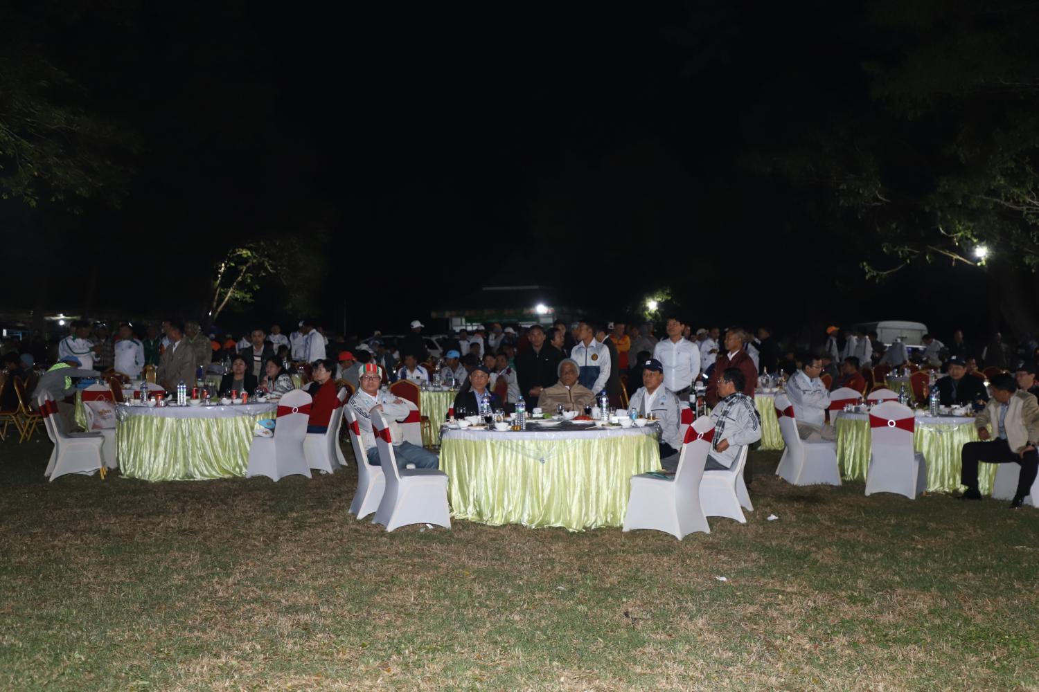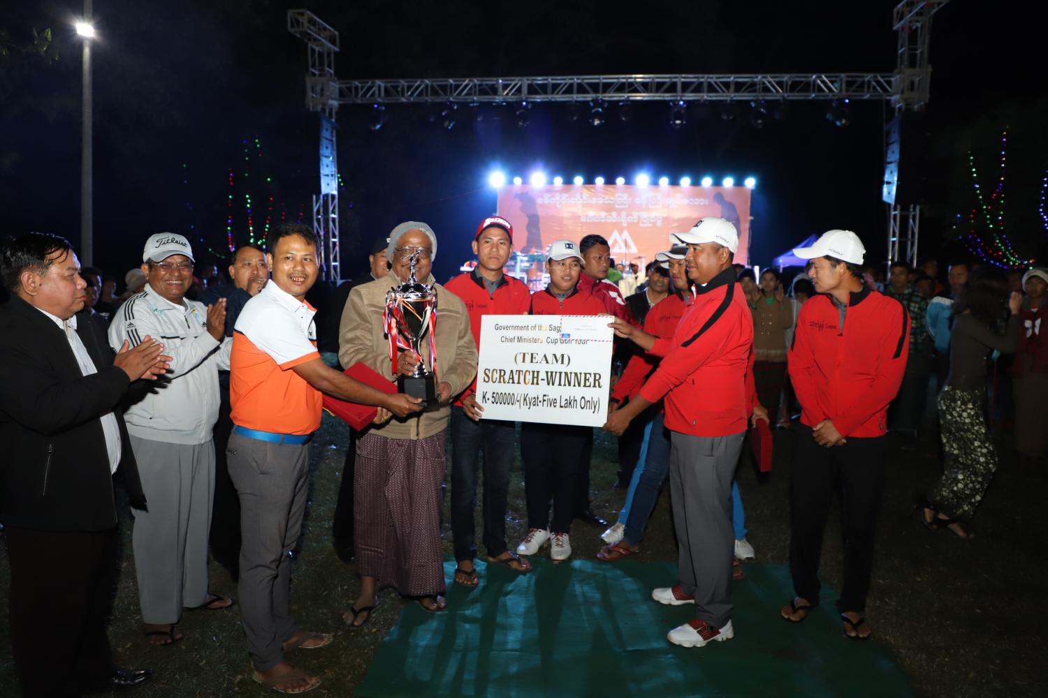 ရှေးဉီးစွာ တိုင်းဒေသကြီးဝန်ကြီးချုပ်နှင့်အဖွဲ့က ဖိတ်ကြားထားသောဧည့်သည်တော်များနှင့်အတူ တိုင်းဒေသကြီးအတွင်းရှိ စစ်ကိုင်း၊ မုံရွာ၊ မော်လိုက်၊ ကလေး၊ ကသာ၊ တမူး၊ ရွှေဘို၊ ကောလင်း၊ ဟုမ္မလင်း စသည့် ခရိုင်နှင့်မြို့နယ်များမှ ဌာနဆိုင်ရာများနှင့် ဒေသခံပြည်သူများ ပါဝင်သော ပြိုင်ပွဲဝင် ဂေါက်သီးရိုက်အသင်း (၂၀)တို့မှ အားကစားသမားများအား နှုတ်ဆက်အားပေးပြီး ဂုဏ်ပြုညစာစားပွဲကိုကျင်းပရာ နိုင်ငံကျော်အဆိုတော်နှင့် အခြားအဆိုတော်များ၏ ဖျော်ဖြေမှုတို့အား ကြည့်ရှုအားပေးခဲ့ကြသည်။