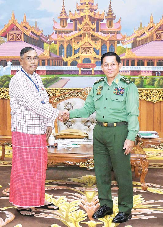 နိုင်ငံတော်စီမံအုပ်ချုပ်ရေးကောင်စီဥက္ကဋ္ဌ တပ်မတော်ကာကွယ်ရေးဦးစီးချုပ် ဗိုလ်ချုပ်မှူးကြီး မင်းအောင်လှိုင်သည် မွန်ပြည်သစ်ပါတီ (NMSP) မှ ဒုတိယဥက္ကဋ္ဌ နိုင်အောင်မင်း ဦးဆောင်သည့် ငြိမ်းချမ်းရေးကိုယ်စားလှယ်အဖွဲ့အား ယနေ့နံနက်ပိုင်းတွင် နေပြည်တော်ရှိ ဘုရင့်နောင်ရိပ်သာ ဧည့်ခန်းမဆောင်၌တွေ့ဆုံ၍ ငြိမ်းချမ်းရေးဆိုင်ရာ ကိစ္စရပ်များ ဆွေးနွေးသည်။