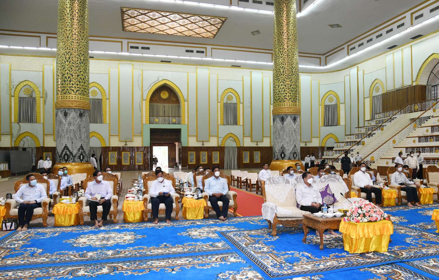 ယင်းနောက် နိုင်ငံတော်စီမံအုပ်ချုပ်ရေးကောင်စီဥက္ကဋ္ဌ နိုင်ငံတော်ဝန်ကြီးချုပ်သည် လိုဏ်ဂူတော်ကြီးအကြီးစားပြင်ဆင်မွမ်းမံခြင်းလုပ်ငန်းဆောင်ရွက်ထားရှိမှုအခြေအနေများကို လှည့်လည်ကြည့်ရှုစစ်ဆေးပြီး တာဝန်ရှိသူများ၏တင်ပြချက်များအပေါ် လိုအပ်သည်များ လမ်းညွှန်မှာကြား၍ လိုဏ်ဂူတော်ကြီး၏အပေါ်ဆုံးထပ်ရှိ ဗုဒ္ဓရုပ်ပွားတော်မြတ်အား ဖူးမြော်ကြည်ညိုသည်။