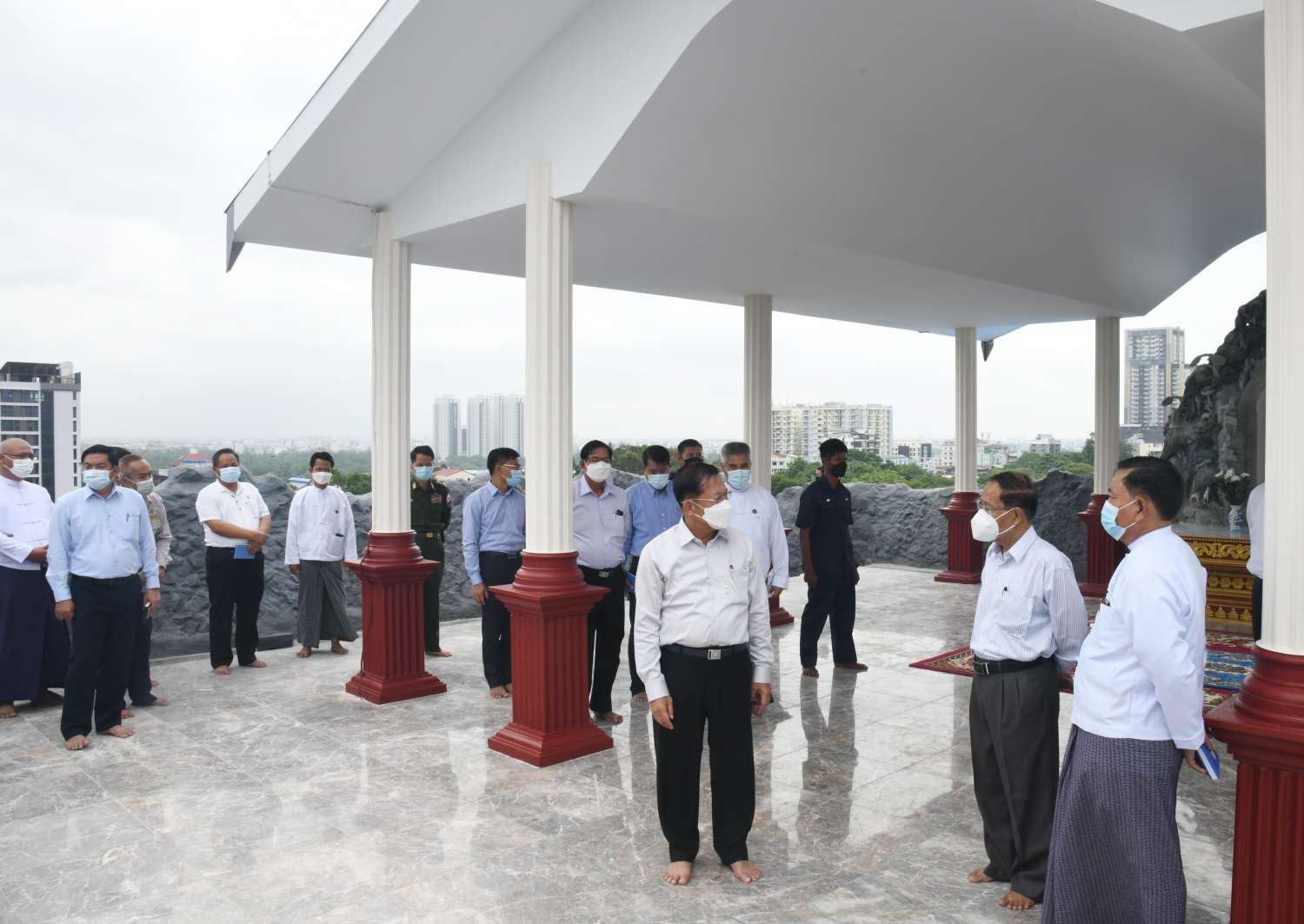ထို့နောက် နိုင်ငံတော်စီမံအုပ်ချုပ်ရေးကောင်စီဥက္ကဋ္ဌ နိုင်ငံတော်ဝန်ကြီးချုပ်နှင့်အဖွဲ့ဝင်များသည် သီရိမင်္ဂလာကမ္ဘာအေးကုန်းမြေရှိသာသနိကအဆောက်အဦများ၊ ဟံသာသီရိကုန်းတော်ရှိ နိုင်ငံတော်ဩဝါဒါစရိယဆရာတော်ကြီးများနှင့် နိုင်ငံတော်ဗဟိုသံဃာ့ဝန်ဆောင် ဆရာတော်ကြီးများလာရောက်စဉ် ခေတ္တသီတင်းသုံးသည့်အဆောင်များနှင့်လမ်းများ အဆင့်မြှင့်တင်ဆောင်ရွက်နိုင်မည့်အခြေအနေများကို မော်တော်ယာဉ်များဖြင့် လှည့်လည်ကြည့်ရှုစစ်ဆေးခဲ့ကြသည်။