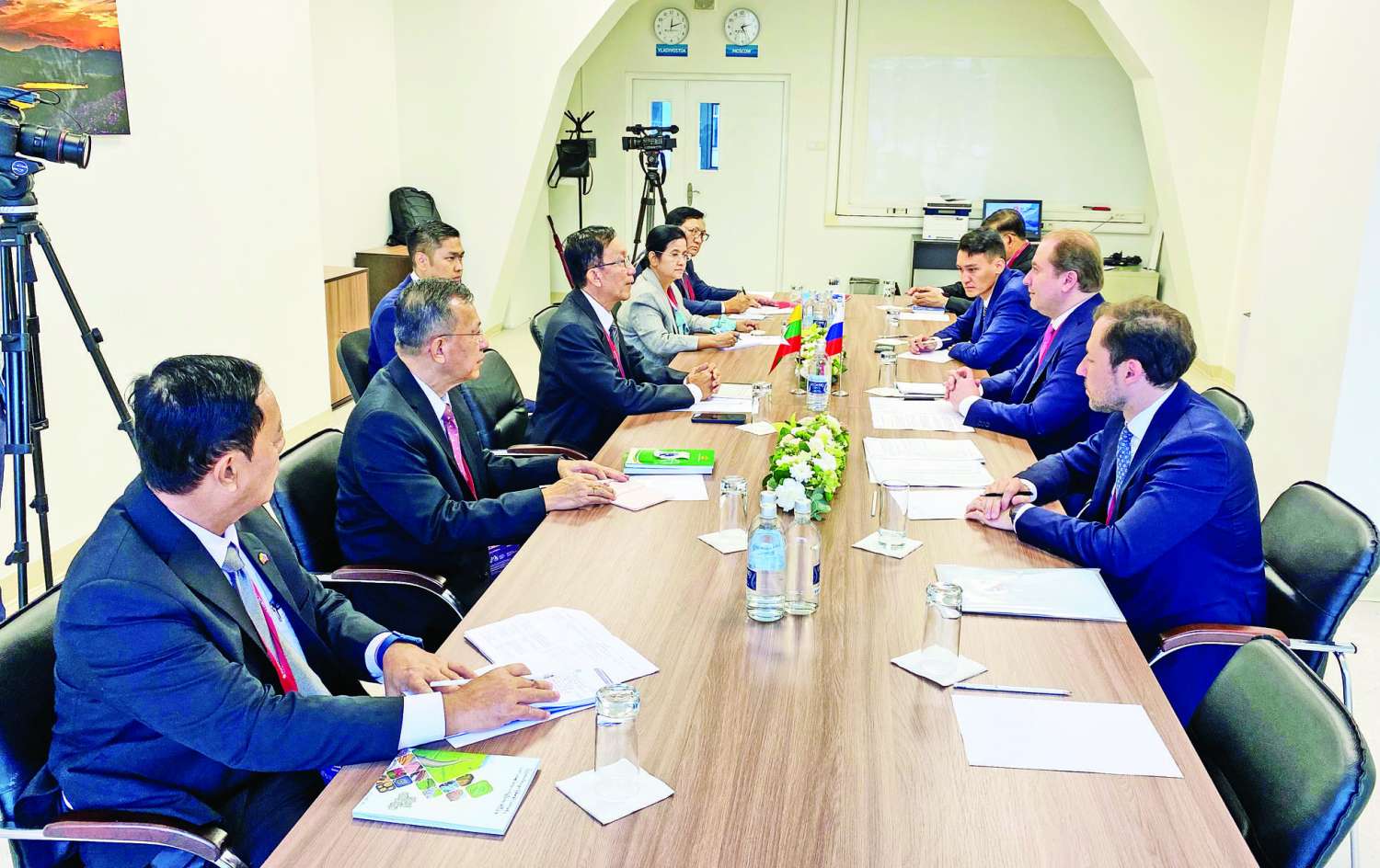 နိုင်ငံတော်စီမံအုပ်ချုပ်ရေးကောင်စီဥက္ကဋ္ဌ နိုင်ငံတော်ဝန်ကြီးချုပ်နှင့်အတူ ရုရှားဖက်ဒရေးရှင်းနိုင်ငံ ခရီးစဉ်တွင် လိုက်ပါလာသည့် ပြည်ထောင်စုဝန်ကြီးများ၊ ဒုတိယဝန်ကြီးများသည် ယနေ့တွင် သက်ဆိုင်ရာကဏ္ဍအသီးသီးအလိုက် ဆွေးနွေးမှုများကို ဆောင်ရွက်ကြသည်။
