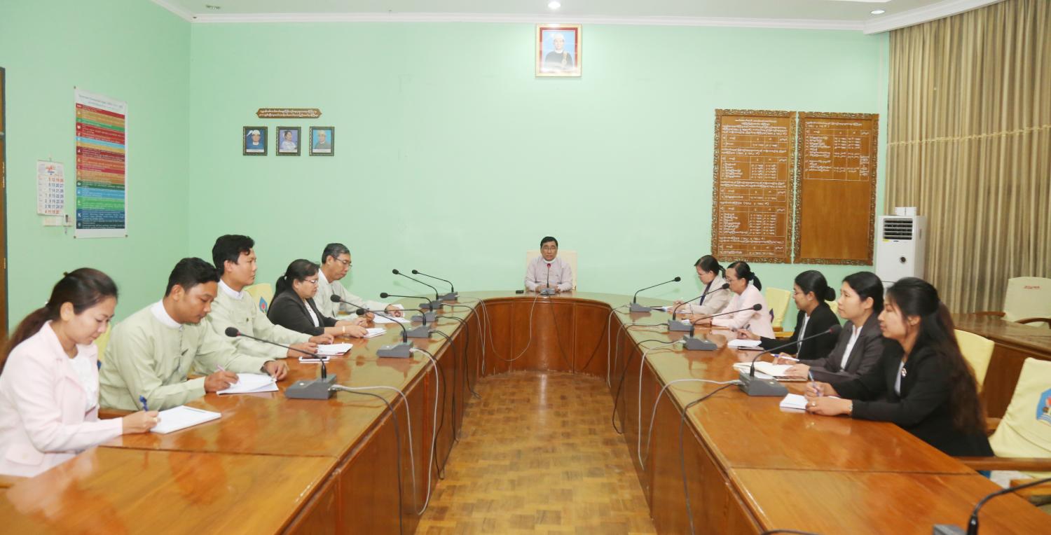 အစည်းအဝေးတွင် ပြည်ထောင်စုဝန်ကြီး ဒေါက်တာဝင်းမြတ်အေး က နိုင်ငံတော်ဖွံ့ဖြိုး တိုးတက်ရေး ကြိုးပမ်းဆောင်ရွက်ရာတွင် လူသားအရင်းအမြစ်ဖွံ့ဖြိုးတိုးတက်ရေးသည် အရေးကြီးပါကြောင်း၊ လူသားအရင်းအမြစ် ဖွံ့ဖြိုးတိုးတက်ရေးအတွက် လူ့ဘဝအစရက်ပေါင်း (၁၀၀၀)သည် အရေးအကြီးဆုံးသော အခိုက်အတန့် ဖြစ်ပါကြောင်း၊ မိမိတို့ဝန်ကြီးဌာန၏ ဦးစားပေးလုပ်ငန်းများ တွင် လူ့ဘဝအစရက်ပေါင်း (၁၀၀၀)ကာလအတွင်း ဖွံ့ဖြိုးတိုးတက်ရေး အခြေခံကောင်းများ ရရှိစေမည့် လုပ်ငန်းများဖြစ်သော လူမှုကာကွယ်စောင့်ရှောက်ရေးဆိုင်ရာ ငွေကြေးထောက်ပံ့ရေး လုပ်ငန်းများ၊ ရှေးဦးအရွယ် ကလေးသူငယ် ပြုစုပျိုးထောင်ရေးနှင့် ဖွံ့ဖြိုးရေးလုပ်ငန်းနှင့် ရှေးဦး အရွယ် ကလေးသူငယ် ဖွံ့ဖြိုးရေးအခြေအနေ တိုင်းတာစစ်ဆေးခြင်းနှင့် ကူညီပံ့ပိုးခြင်းဆိုင်ရာ ဝန်ဆောင်မှုလုပ်ငန်းများကို အကောင်အထည်ဖော်ဆောင်ရွက် လျက်ရှိပါကြောင်း၊ ထိုလုပ်ငန်း များနှင့်ပတ်သက်၍ ပြည်သူလူထုတစ်ဦးချင်းစီ နားလည်သဘောပေါက်စေရေးနှင့် ပါဝင်ဆောင်ရွက် နိုင်ရေးအတွက် ပညာပေးလုပ်ငန်းများဟာ အရေးကြီးပါကြောင်းနှင့် ကျယ်ကျယ်ပြန့်ပြန့်ဆောင် ရွက်နိုင်ရေး နည်းလမ်း ရှာဖွေဆောင်ရွက်သွားကြရန် လိုအပ်ပါကြောင်း ဆွေးနွေးပြောကြားသည်။