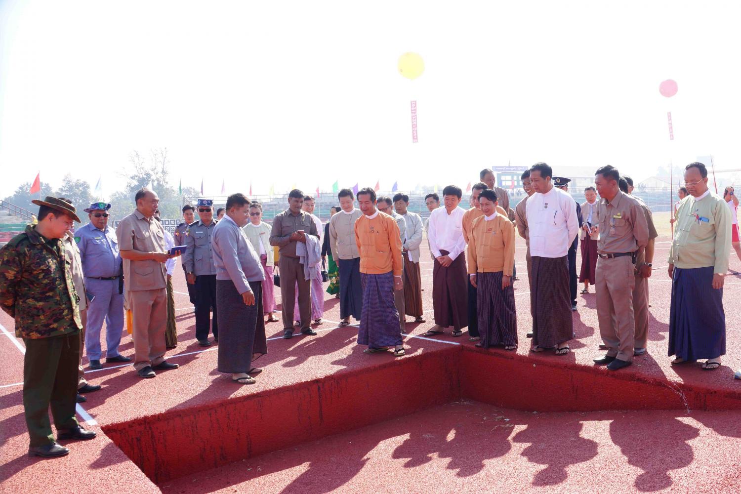 ထို့နောက် အားကစားနှင့် ကာယပညာသိပ္ပံ (လွိုင်ကော်) ၏ မီတာ(၄၀၀)Synthetic ပြေးလမ်းအား ပြည်နယ်ဝန်ကြီးချုပ်၊ လုံခြုံရေးနှင့်နယ်စပ်ရေးရာဝန်ကြီး၊ လမ်းပန်းဆက်သွယ်ရေးနှင့် လျှပ်စစ်ဝန်ကြီး၊ စည်ပင်သာယာရေးနှင့် လူမှုရေးဝန်ကြီး၊ ကျန်းမာရေးနှင့် အားကစားဝန်ကြီးဌာန၊ အားကစားနှင့် ကာယပညာဦးစီးဌာနမှ ဒုတိယညွှန်ကြားရေးမှူးချုပ်နှင့် ပြေးလမ်းတာဝန် ယူဆောင်ရွက်ခဲ့သည့် REVA Co.,Ltd မှ ကိုယ်စားလှယ်တို့က ဖဲကြိုးဖြတ် ဖွင့်လှစ်သည်။