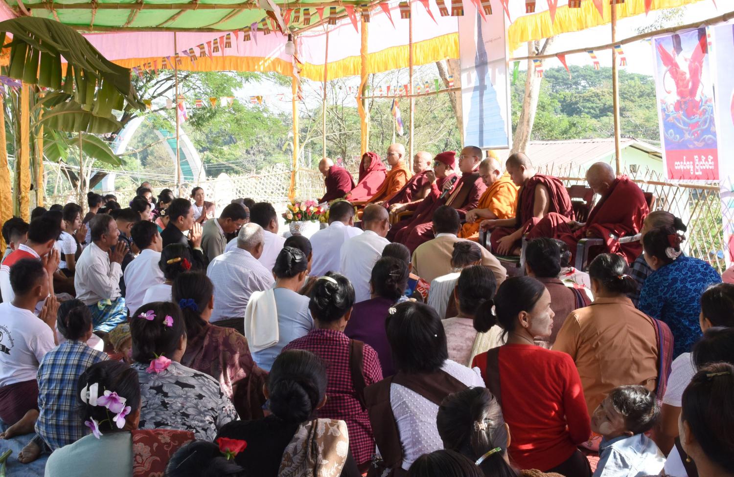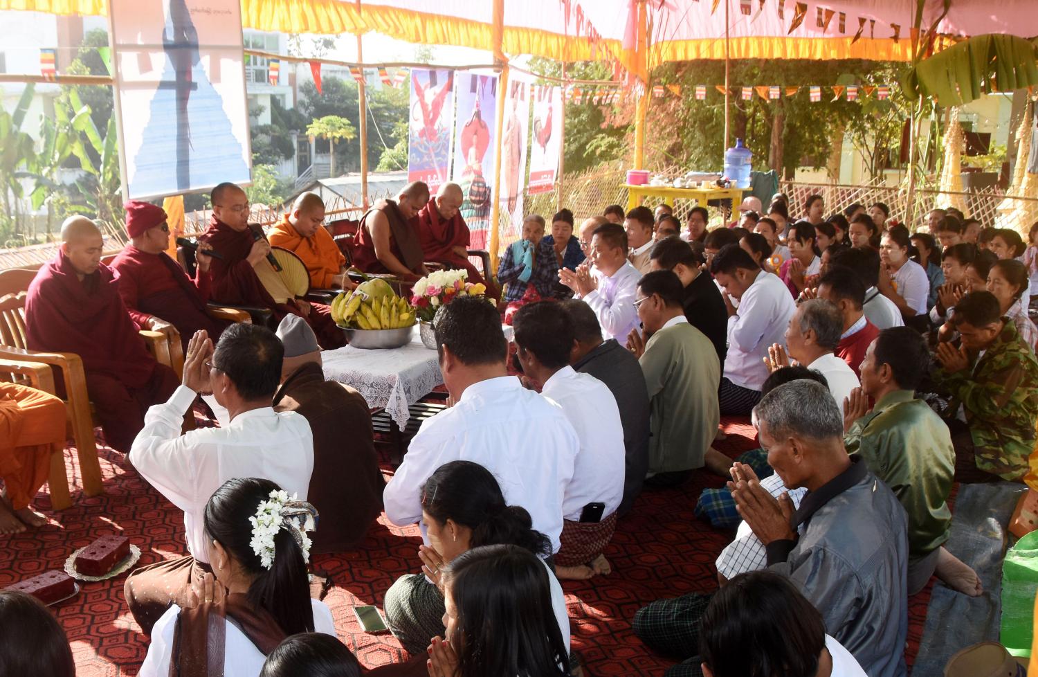 အခမ်းအနားတွင် အေးမြသာယာကျောင်းတိုက် ဆရာတော်ဦးဇောတိကအမှူးပြုသော ဆရာတော်သံဃာတော်များ၊ ဌာနဆိုင်ရာတာဝန်ရှိသူများ၊ ဂေါပကအဖွဲ့ဝင်များနှင့် အလှူရှင်များက သတ်မှတ်နေရာများတွင် အုတ်မြစ်ချပေးကြသည်။