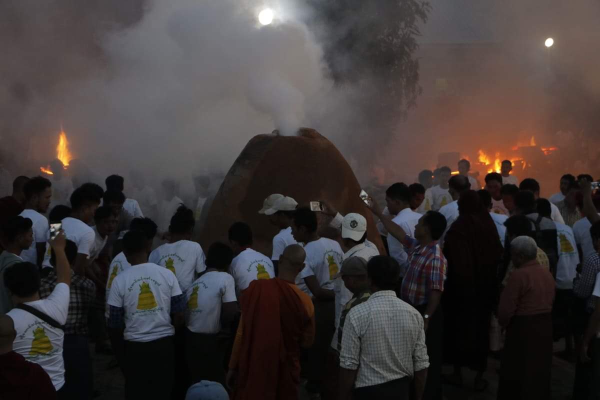 “ဆရာတော်ကြီးက ဒီခေါင်းလောင်းကြီးကို သူ့မွေးနေ့အထိမ်းအမှတ်အဖြစ် စစ်ကိုင်းမြို့ သိရီသုမနချောင် မိုးကုတ် ဝိပဿနာဓမ္မရိပ်သာမှာ ထားရှိသွားမှာပါ။ ကျွန်တော်က တန်ခူးလ မတိုင်ခင် ခေါင်းလောင်းကြီးကို အပြီးချိတ်ဆွဲနိုင်ဖို့ သွန်းလောင်းပေးရမှာပါ။ မြန်မာပြည်မှာတော့ လက်ရှိ ပထမအကြီးဆုံးခေါင်းလောင်းကြီးက ကြေးပိဿာချိန် ၅၅၅၅၅ ရှိတဲ့ မင်းကွန်းခေါင်းလောင်းကြီးဖြစ်ပြီး ဒုတိယအကြီးဆုံးအနေနဲ့ ရွှေတိဂုံစေတီတော်က ကြေးပိဿာချိန် ၂၆၀၀၀ ရှိတဲ့ သာယာဝတီမင်းခေါင်းလောင်းဖြစ်ပါတယ်။ အခုဒီခေါင်းလောင်းကြီးကတော့ မြန်မာနိုင်ငံမှာ တတိယအကြီးဆုံး ဖြစ်လာဖွယ်ရှိသည်။ ပြာသိုလပြည့်နေ့ နံနက် ၉ နာရီ ၄၅ မိနစ်ကစပြီး ကြေးစတင်ကျိုကာ သွန်းလောင်းပြီး ဒီခေါင်းလောင်းကြီးတစ်ခုလုံးအတွက် ည ၁၂ နာရီမှာ သွန်းလောင်းမှုပြီးစီးမှာပါ။ သွန်းလောင်းမှုအဆင်ပြေဖို့နဲ့ အသံမြည်အောင် အဓိကဦးစားပေးပြီး ဆောင်ရွက်သွား မှာပါလို့ ရွှေခေါင်းလောင်း ကြေးသွန်းပညာရှင် ကိုအောင်သန်းမော်က ပြောကြားသည်။