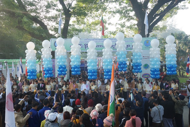 ရှေးဦးစွာ စစ်ကိုင်းတိုင်းဒေသကြီးဝန်ကြီးချုပ် ဒေါက်တာမြင့်နိုင်၊ စီးပွားရေးနှင့်ကူးသန်း ရောင်းဝယ်ရေး ဝန်ကြီးဌာန ဒုတိယဝန်ကြီး ဦးအောင်ထူး၊ Indian ကောင်စစ်ဝန်ချုပ် H.E.Mr. Nandan Singh Bhaisora- Consul General of Indian၊ Design & Development Dept. Oshimanoki Mayanmar Co, .ltd. General Manager Mr.Matsuoka၊ စစ်ကိုင်းတိုင်းဒေသကြီး လွှတ်တော် ဥက္ကဋ္ဌ ဦးသန်း၊ လုံခြုံရေးနှင့် နယ်စပ်ရေးရာဝန်ကြီးဌာန ဗိုလ်မှူးကြီး သန်းထွန်းအောင်၊ စစ်ကိုင်းတိုင်းဒေသကြီး စီမံကိန်းနှင့် ဘဏ္ဍာရေးဝန်ကြီး ဦးစိုးဦး၊ ပြည်ထောင်စုသမ္မတမြန်မာနိုင်ငံ ကုန်သည်များနှင့် စက်မှုလက်မှုလုပ်ငန်းရှင်များ အသင်းချုပ် (UMFCCI) ဒုတိယဉက္ကဋ္ဌ ဦးသိန်းဟန် နှင့် စစ်ကိုင်းခရိုင် ကုန်သည်များနှင့် စက်မှုလက်မှု လုပ်ငန်းရှင်များအသင်း နာယက ဦးတင်မျိုးလွင် တို့က အခမ်းအနားကို ဖဲကြိုးဖြတ်ဖွင့်လှစ်ပေးခဲ့ကြပြီး ပြသထားသည့် ဈေးဆိုင်ခန်းများကို လှည့်လည်ကြည့်ရှုအားပေးခဲ့ကြသည်။